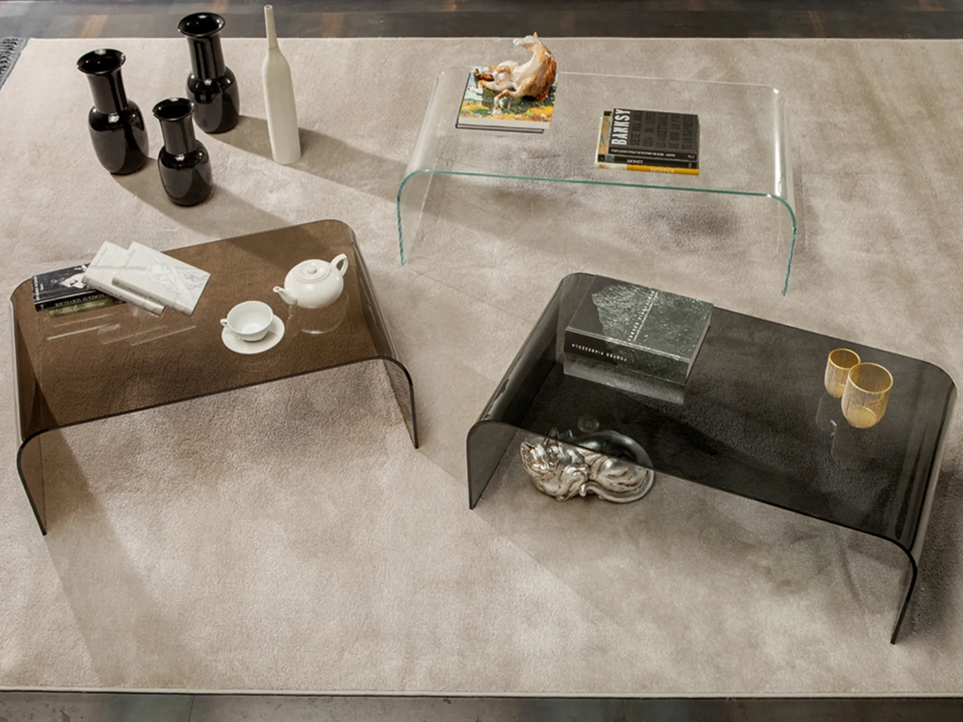 Complementi e tavolini personalizzano l'arredo di casa, riempiendo lo spazio in maniera utile e rendendolo accogliente e bello da vedere. Nel nostro showroom potrai toccare con mano l'eccellenza dei modelli di tavolini moderni in vetro del marchio, proprio come questa proposta in foto. Tavolino Classic di Tonin Casa in vetro: conferirà carattere e fascino a un locale arredato con mobili e complementi dai richiami moderni. Assai versatili e plurifunzionali, i Complementi moderni in vetro svolgono funzioni diverse: completano le doti pratiche e l'estetica dell'ambiente. Le composizioni di grande valore estetico del brand Tonin Casa arredano l'ambiente con i loro colori e stile, ricreando peculiari atmosfere arredative.
