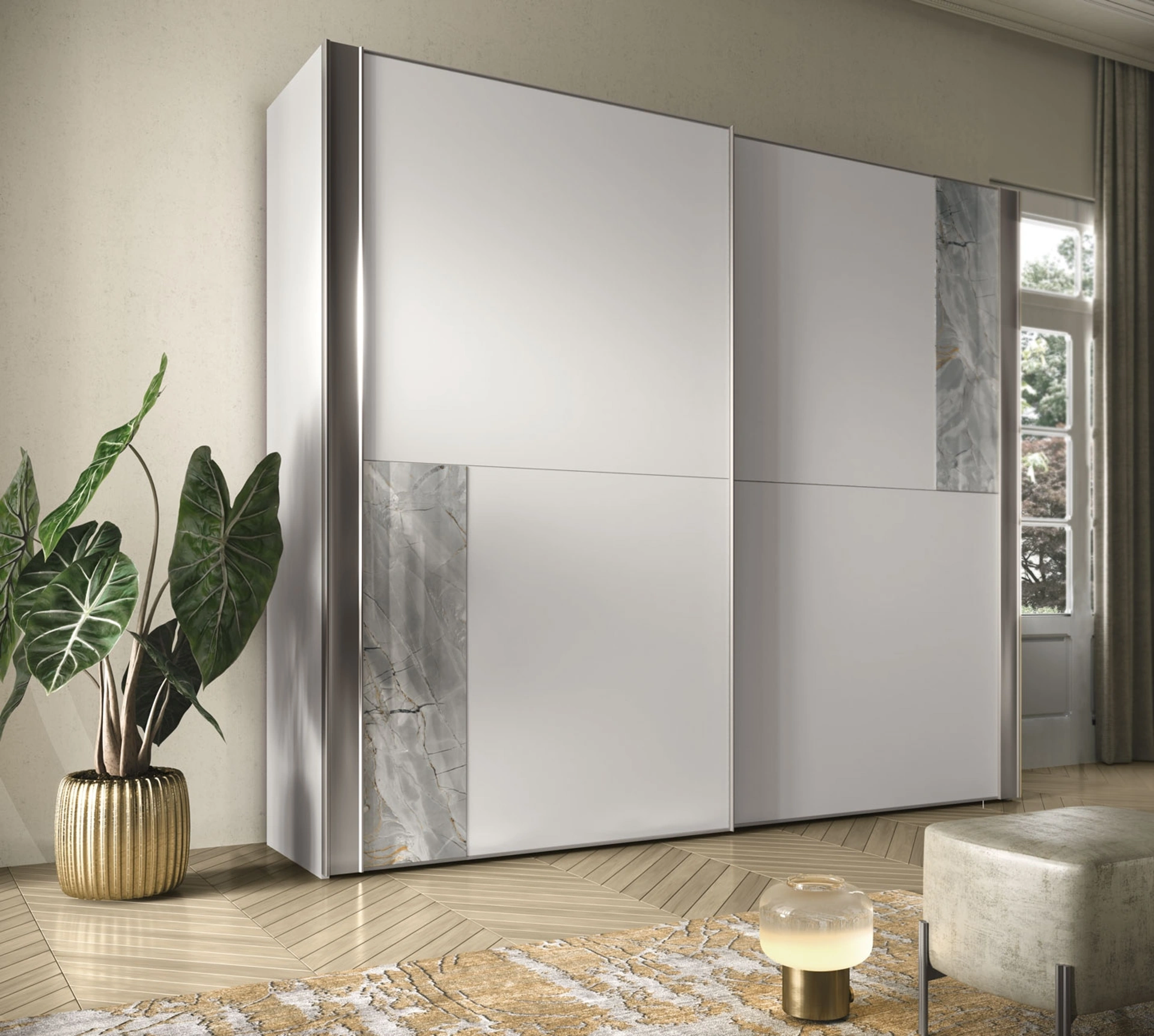 Ti presentiamo l'armadio Afrodite in laccato opaco di Adriatica! Una ricca gamma di armadi a muro con ante scorrevoli.