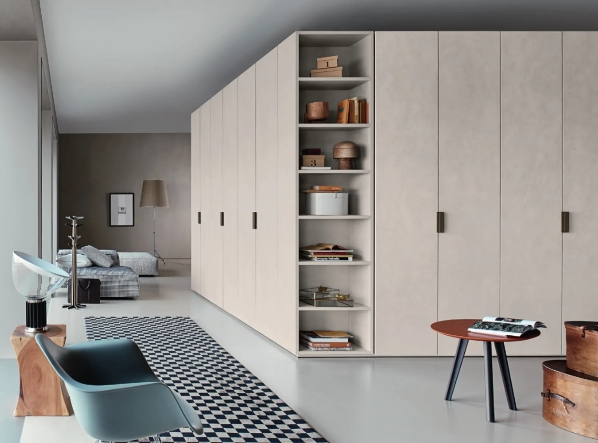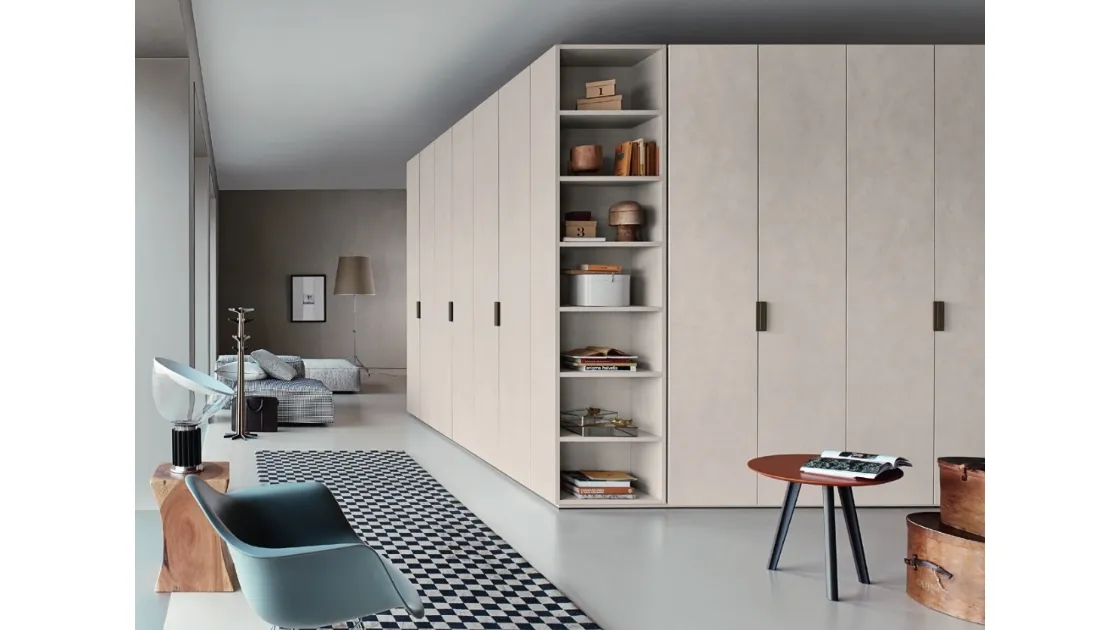 Se sei alla ricerca di armadi ad angolo con ante battenti, clicca e scopri l'armadio Anta Liscia Maniglia Skin di Sangiacomo in materico.