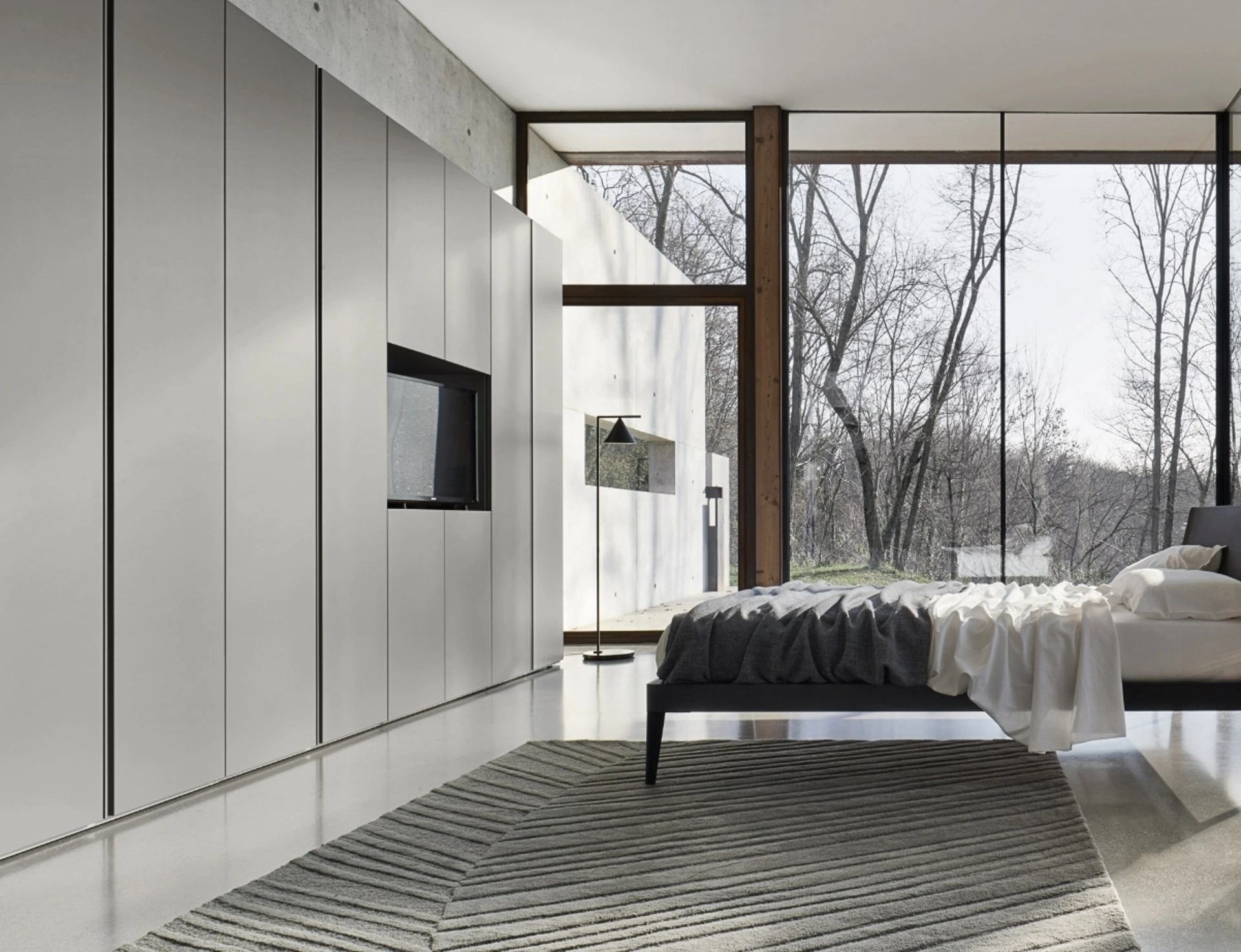 Cerchi un guardaroba in laccato opaco? Clicca e scopri armadiature a muro con ante battenti di Sangiacomo.