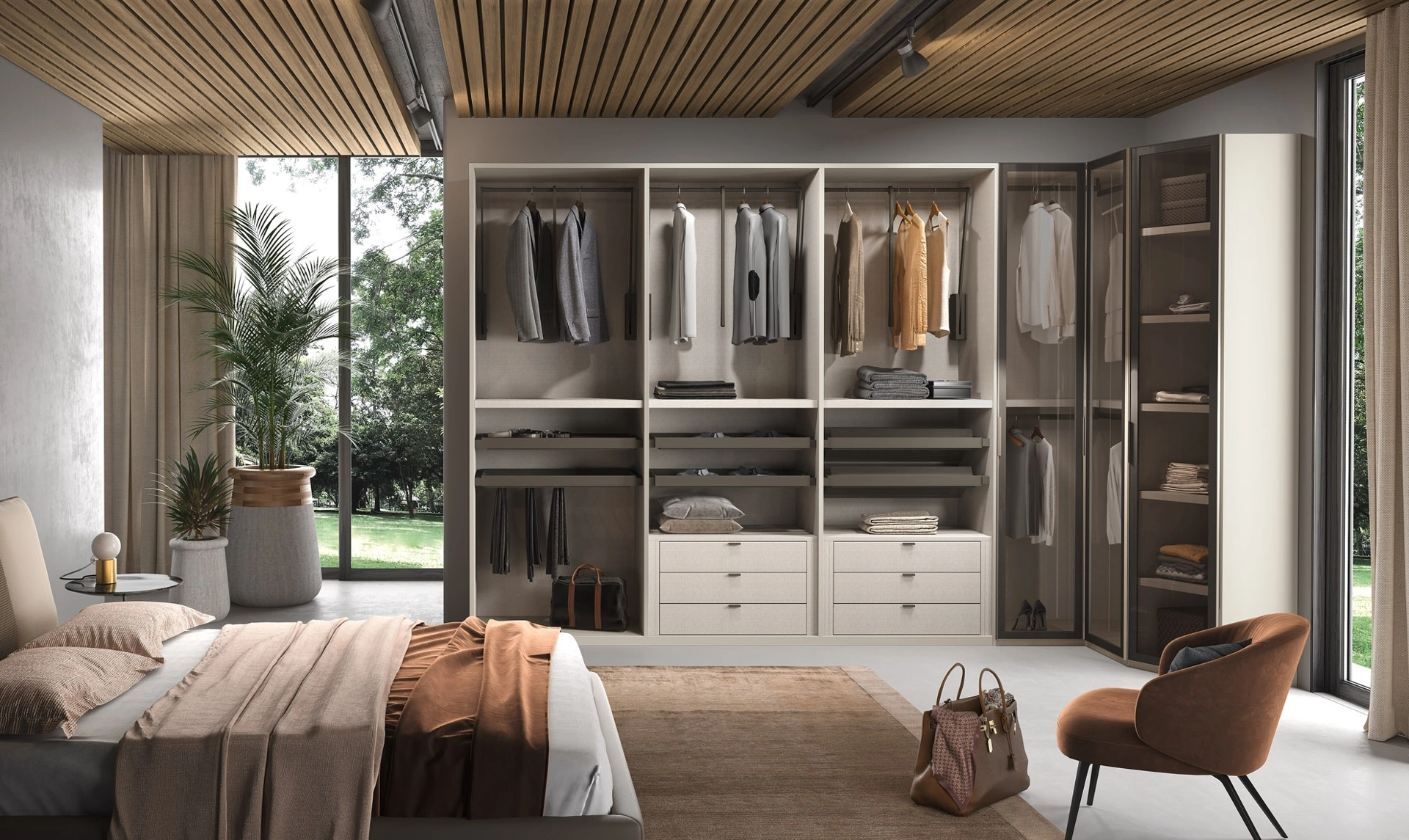 Per ultimare il progetto d'arredo in una zona notte pratica e sofisticata, abbiamo scelto per te le più originali e attuali soluzioni Corso 11, diverse per classe, dimensione, materiale e elementi accessori. Questa proposta, tra i vari modelli cabine armadio con ante battenti di Corso 11, è simbolo di resistenza, stile e raffinatezza duraturi negli anni. Nella nostra collezione di Armadi cabine armadio moderni con ante battenti troverai anche il modello mostrato in foto, perfetto per chi cerca praticità e design. Cabina Armadio 66 di Corso 11: compila il form per informazioni e preventivi e progetta la tua casa come l'hai sempre sognata.