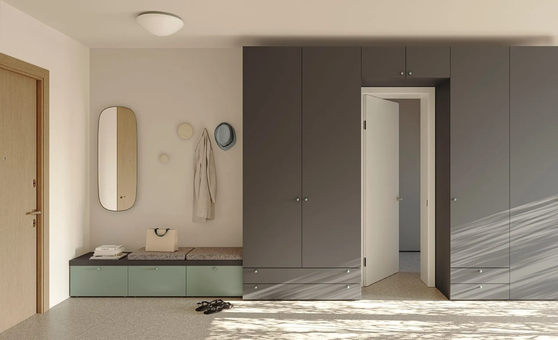 Cerchi un guardaroba in melaminico? Clicca e scopri armadiature a ponte con ante battenti di Colombini Casa.