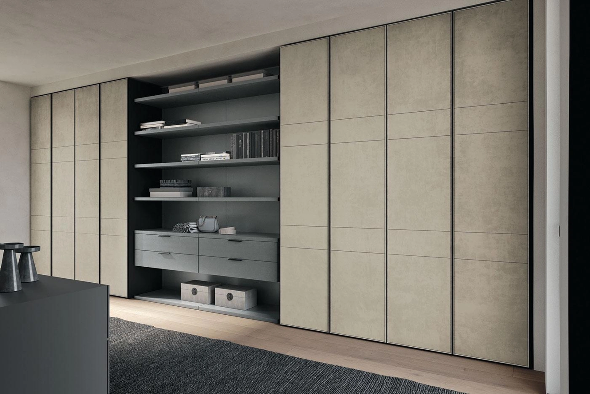 Ti presentiamo l'armadio Comp 372 in materico di Mobilgam! Un ricco catalogo di armadi a muro con ante scorrevoli.
