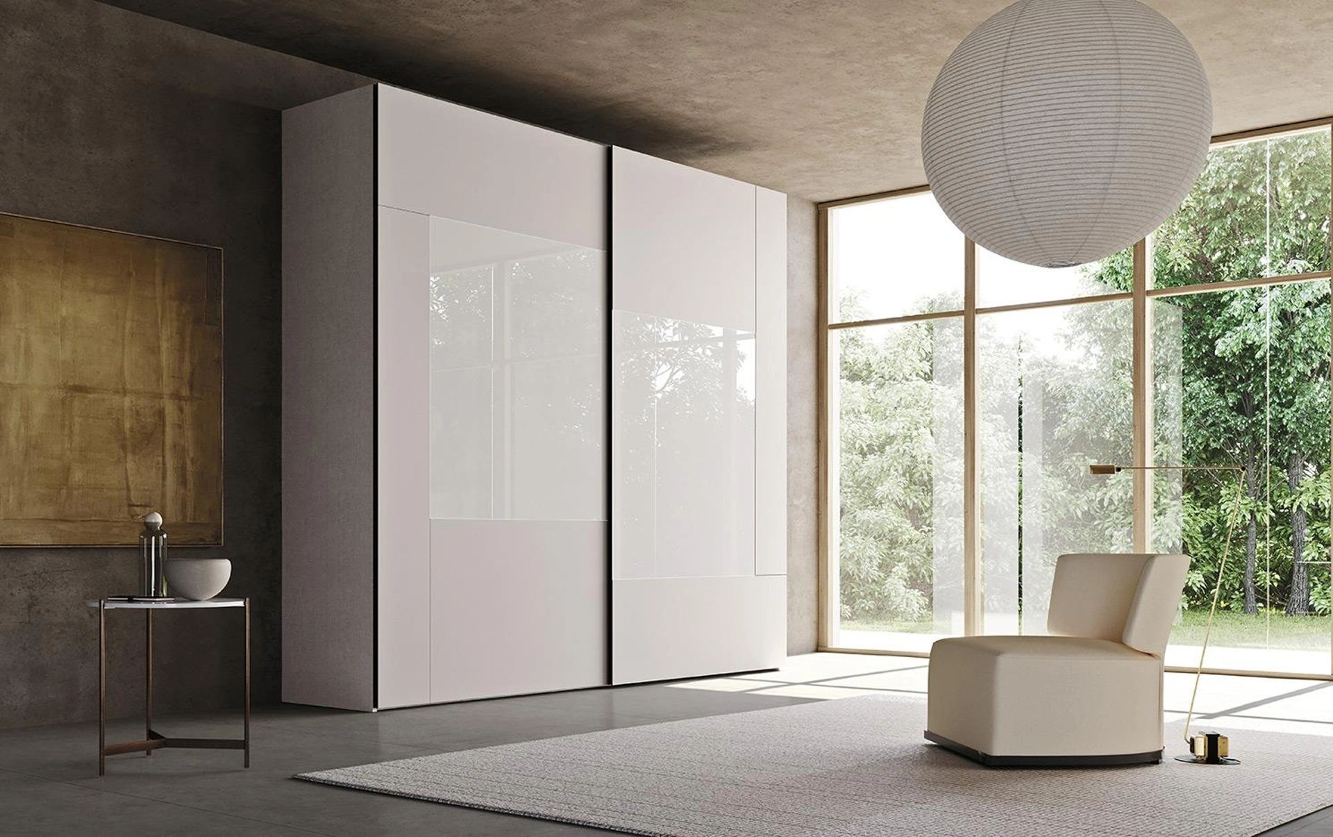Eccoti l'armadio Comp N27 in vetro di Mobilgam! Un ricco catalogo di armadi a muro con ante scorrevoli.