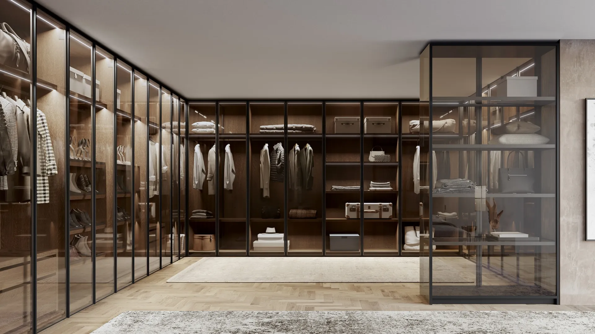 Se sei alla ricerca di armadiature ad angolo con ante battenti, clicca e scopri l'armadio Glass Up di Dall'Agnese in vetro.