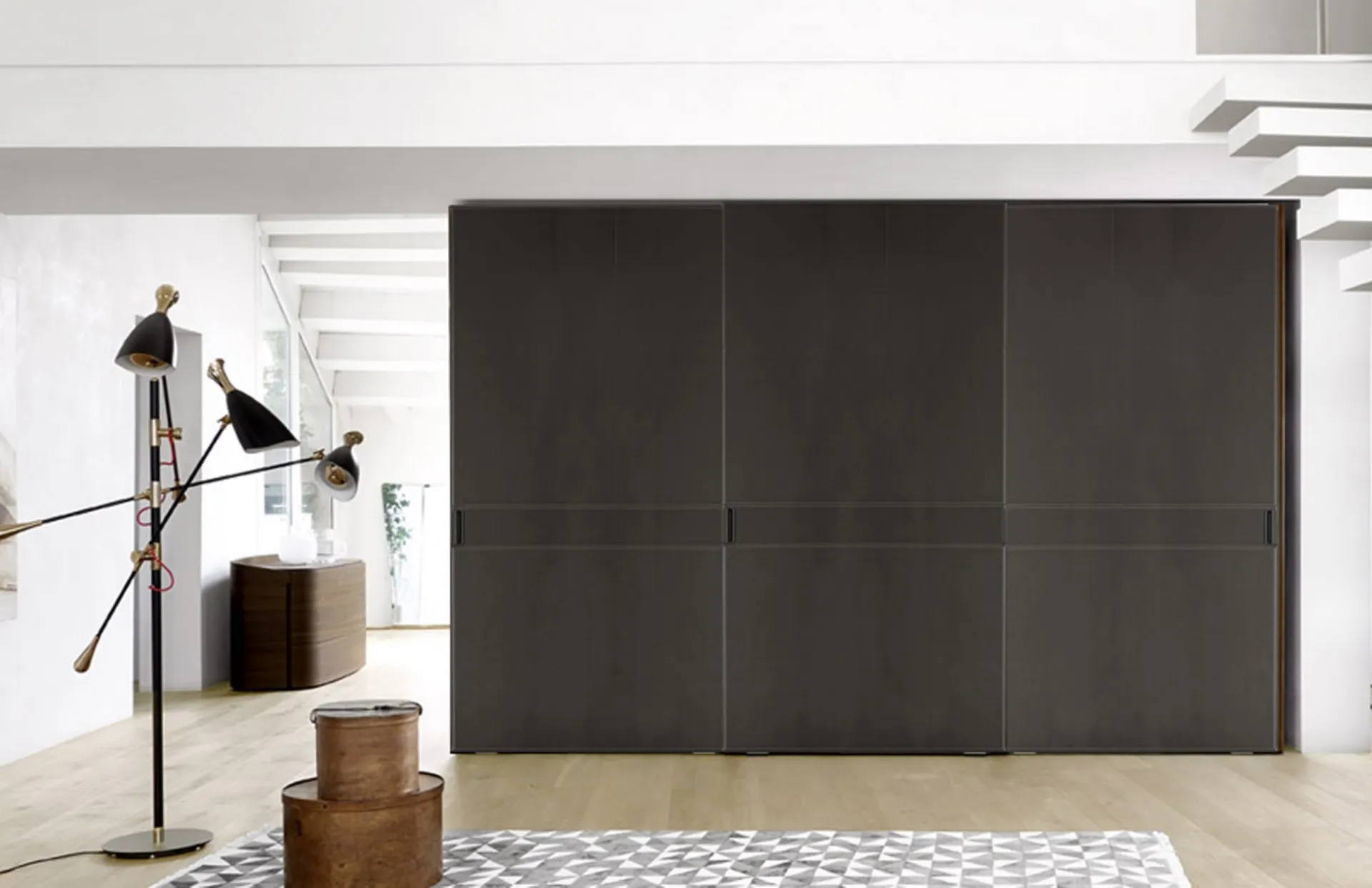Se vuoi armadiature a muro con ante scorrevoli, clicca e scopri l'armadio Eco scorrevole di Sangiacomo in materico.