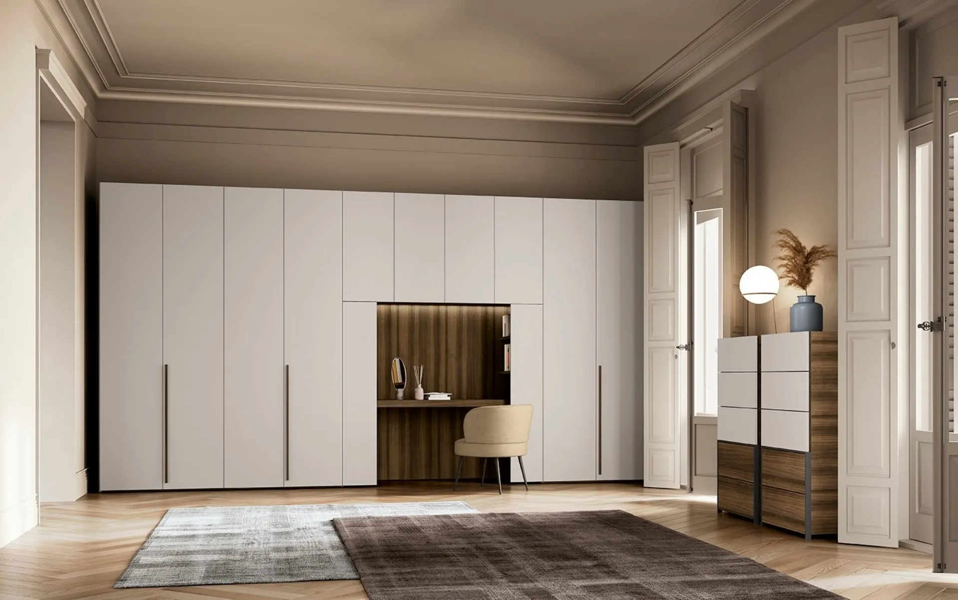 Ecco qui l'armadio Golf W06 Concreta Pul in melaminico di Colombini Casa! Un ricco catalogo di armadi a muro con ante battenti.