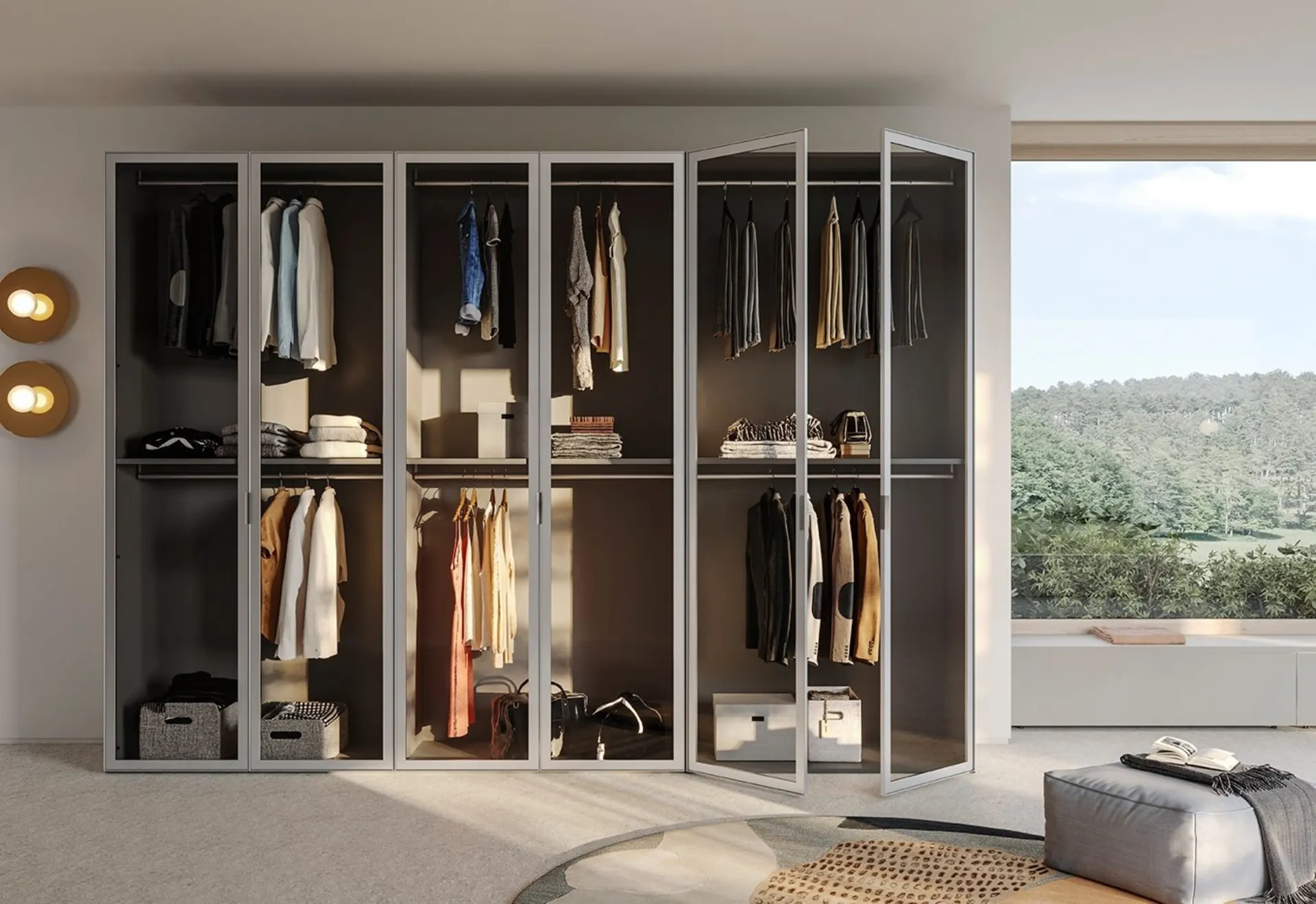 Cerchi un armadio in vetro? Clicca e scopri armadi a muro con ante battenti di Colombini Casa.