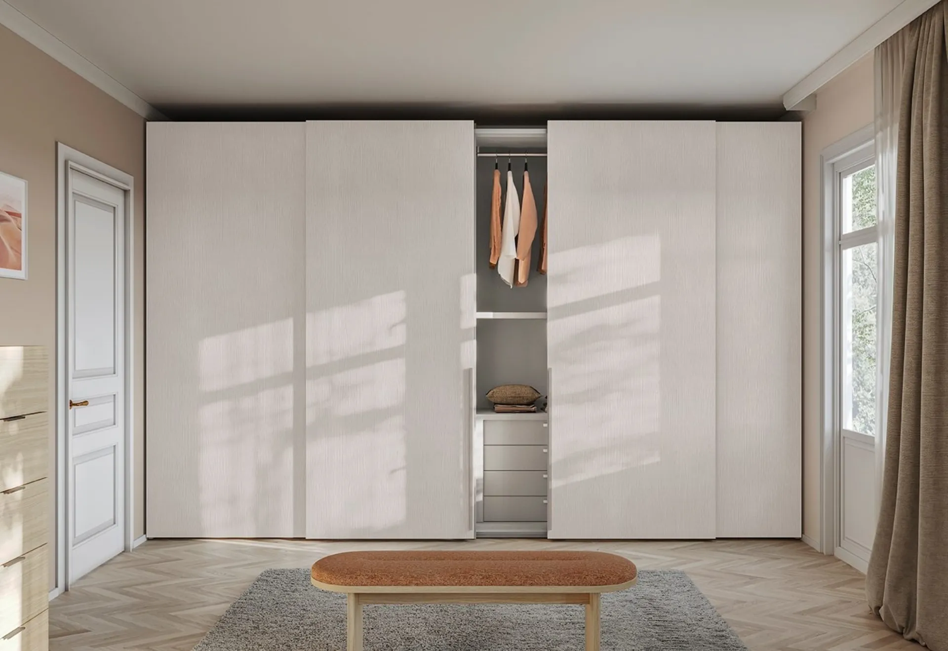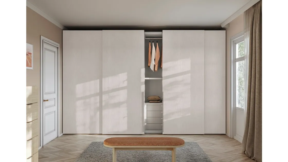 Ecco qui l'armadio Golf W17 Concreta Pul in melaminico di Colombini Casa! Una ricca gamma di armadi su misura con ante scorrevoli.