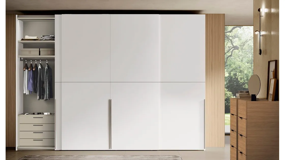 Ti presentiamo l'armadio Golf W18 Concreta Pul in melaminico di Colombini Casa! Una ricca gamma di armadi a muro con ante scorrevoli.