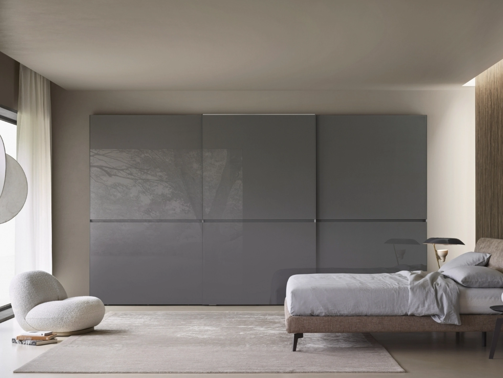 Se cerchi armadi a muro con ante scorrevoli, clicca e scopri l'armadio Horizontal Vetro di Sangiacomo in vetro.
