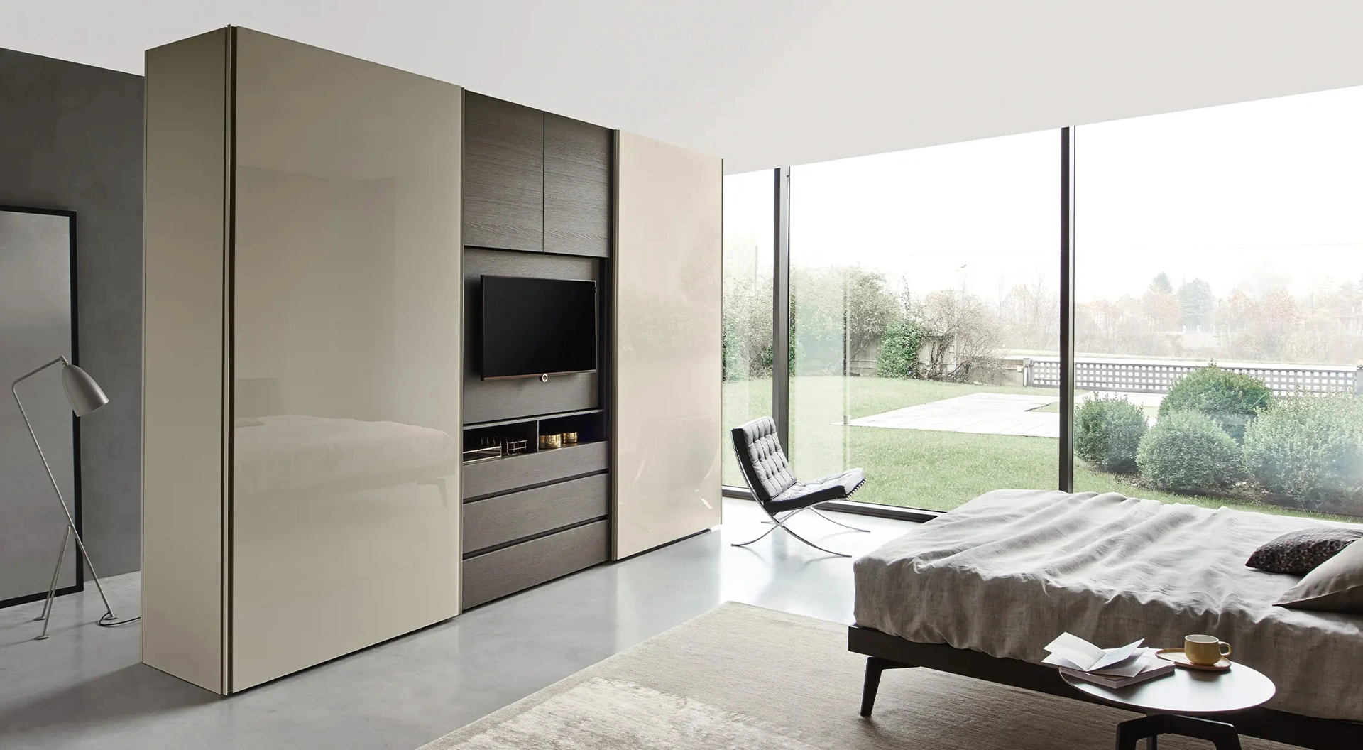 Se sei alla ricerca di armadi componibili con ante scorrevoli, clicca e scopri l'armadio Odeon Scorrevole di Sangiacomo in laccato lucido.