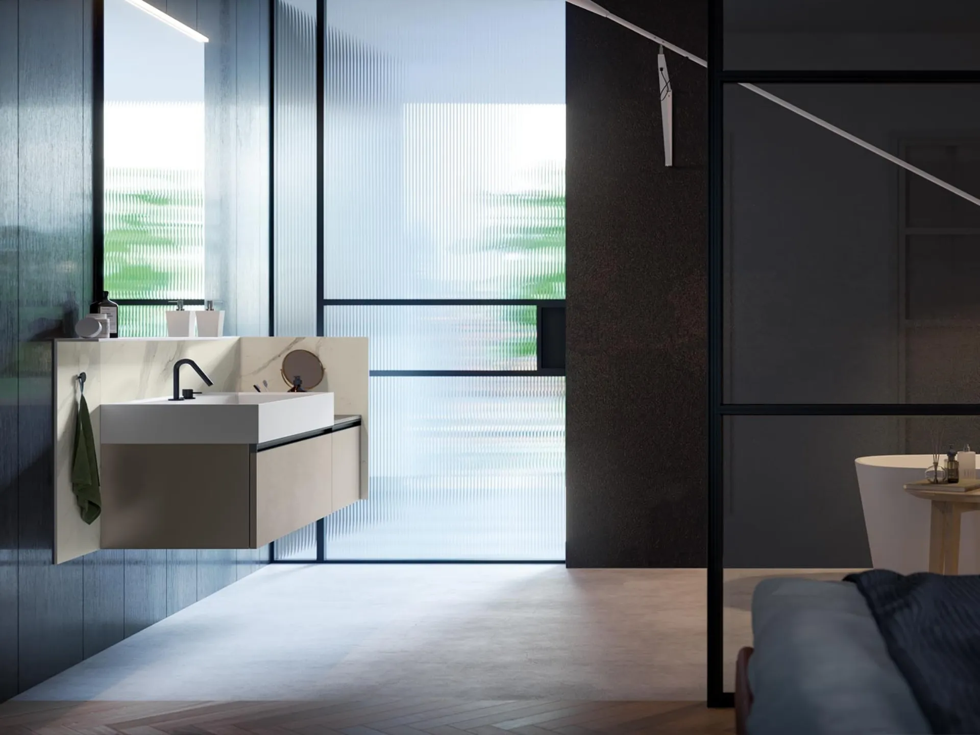 Mobili bagno sospesi in laccato opaco della firma Birex: clicca e scopri l'arredo bagno moderno Deep 01 per il tuo bagno.