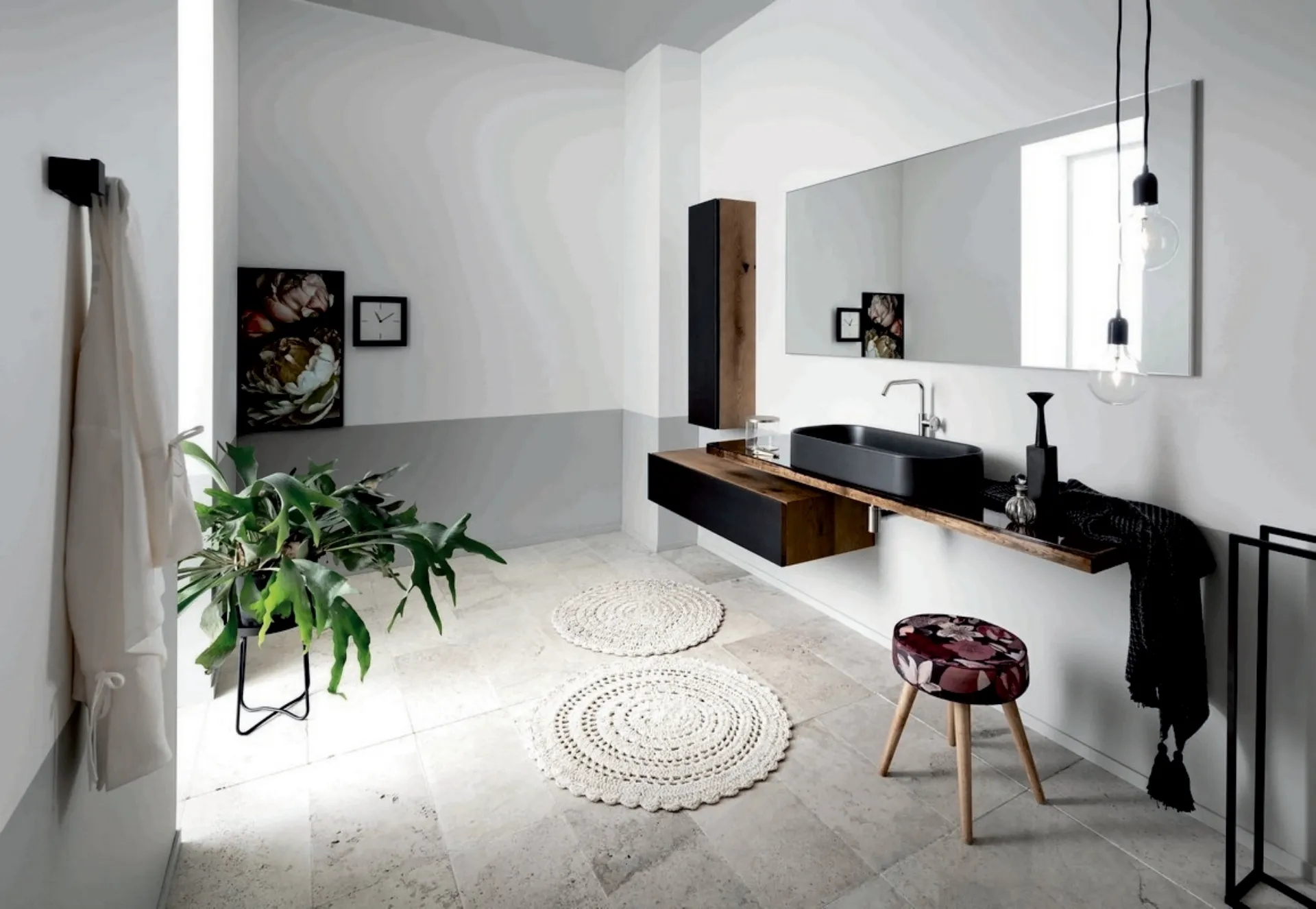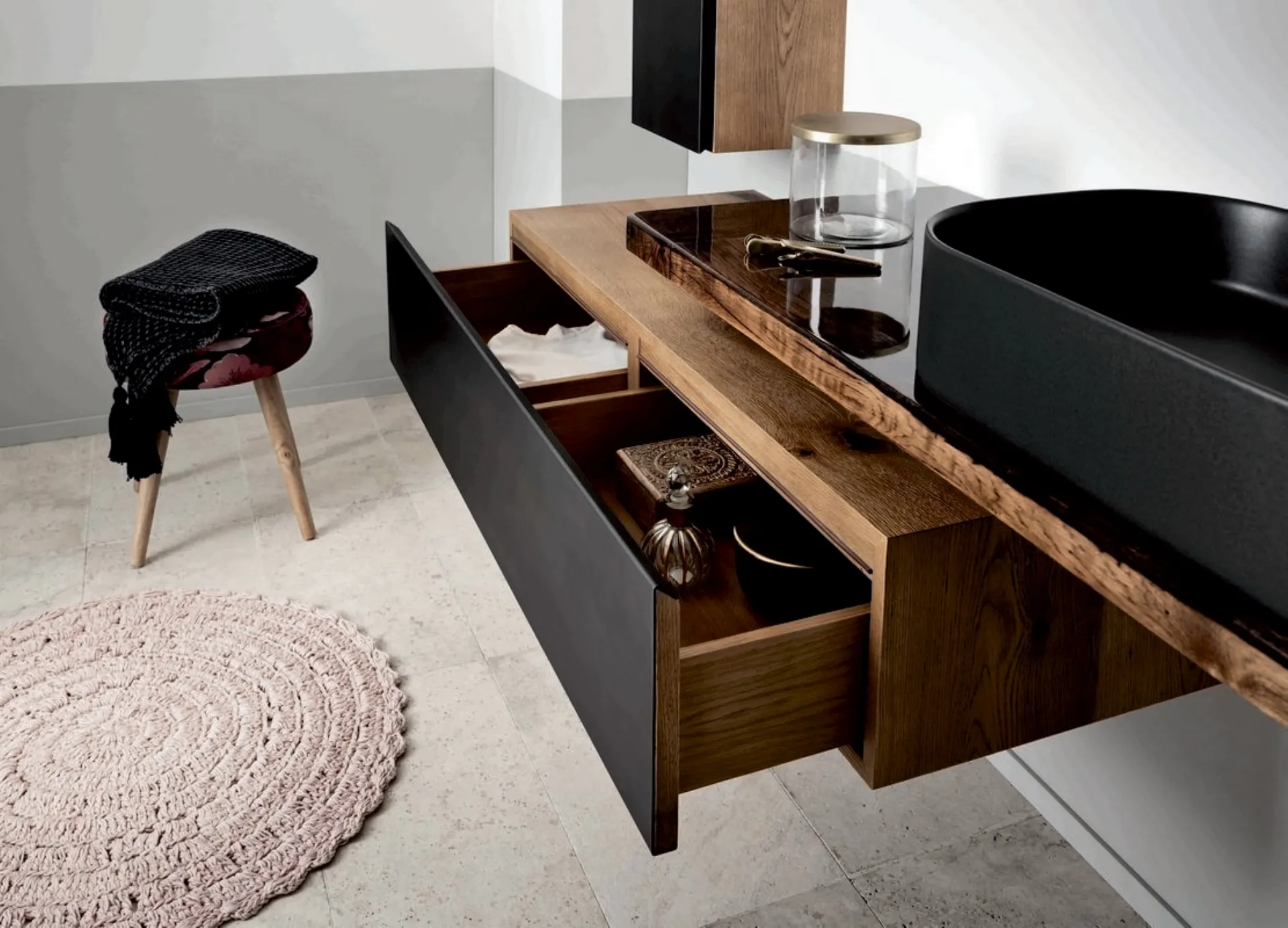 Arreda la stanza del benessere moderno ottimamente con Gap 02, mobili bagno sospesi e accessori in legno di Alta Corte.
