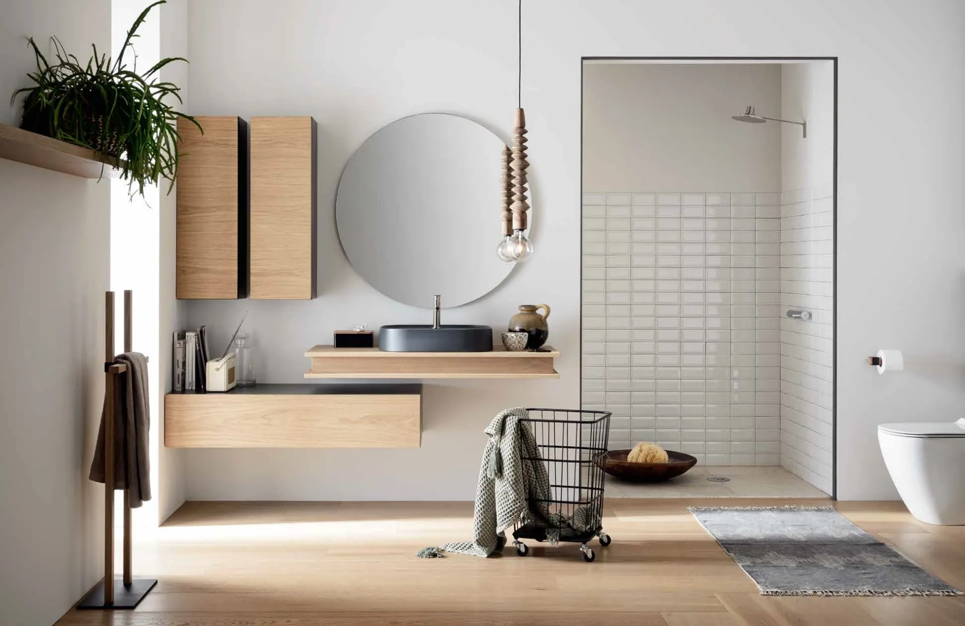 Mobili bagno sospesi in legno del brand Alta Corte: clicca e scopri l'arredo bagno moderno Gap 04 per il tuo bagno.