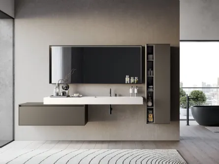 Arreda la stanza del benessere moderno alla perfezione con Traccia 02, mobili bagno sospesi e oggetti in laccato opaco di Birex.