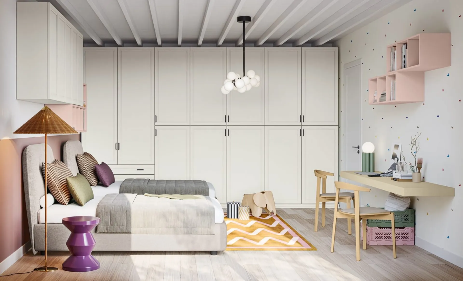 Camerette componibili per ragazzi: scopri il modello in melaminico Arcadia AC001 di Colombini Casa per stanzette classiche.