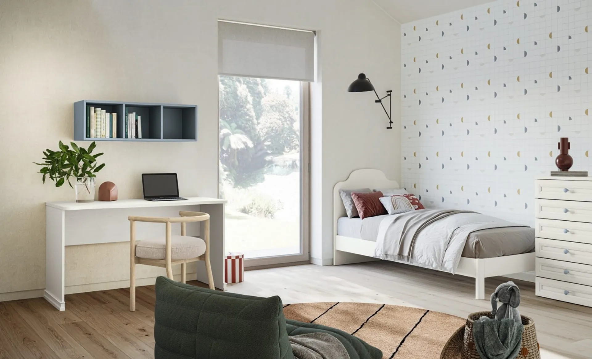 Camerette componibili per ragazzi: scopri il modello in melaminico Arcadia AC004 di Colombini Casa per stanzette classiche.