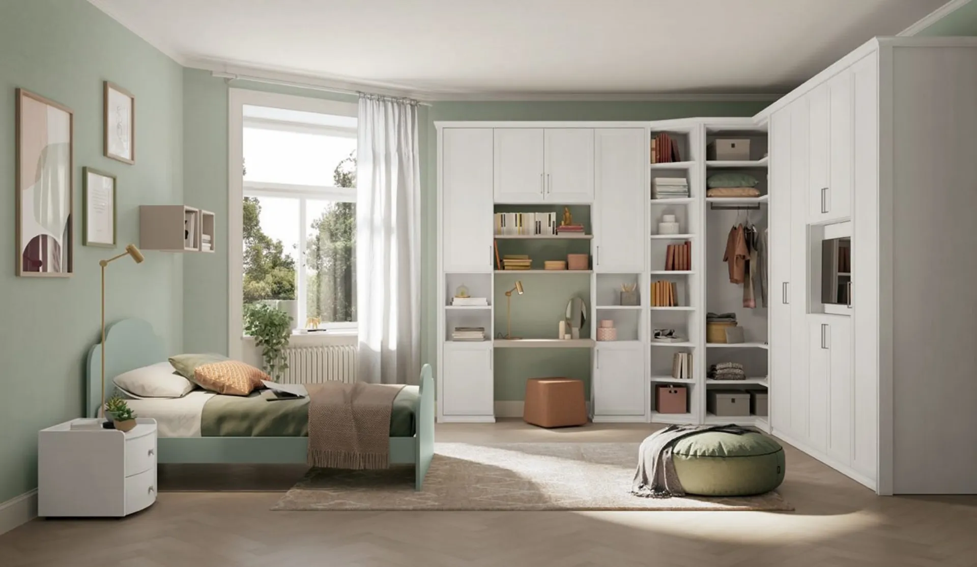 Camerette componibili per ragazzi: scopri il modello in melaminico Arcadia AC009 di Colombini Casa per stanzette classiche.