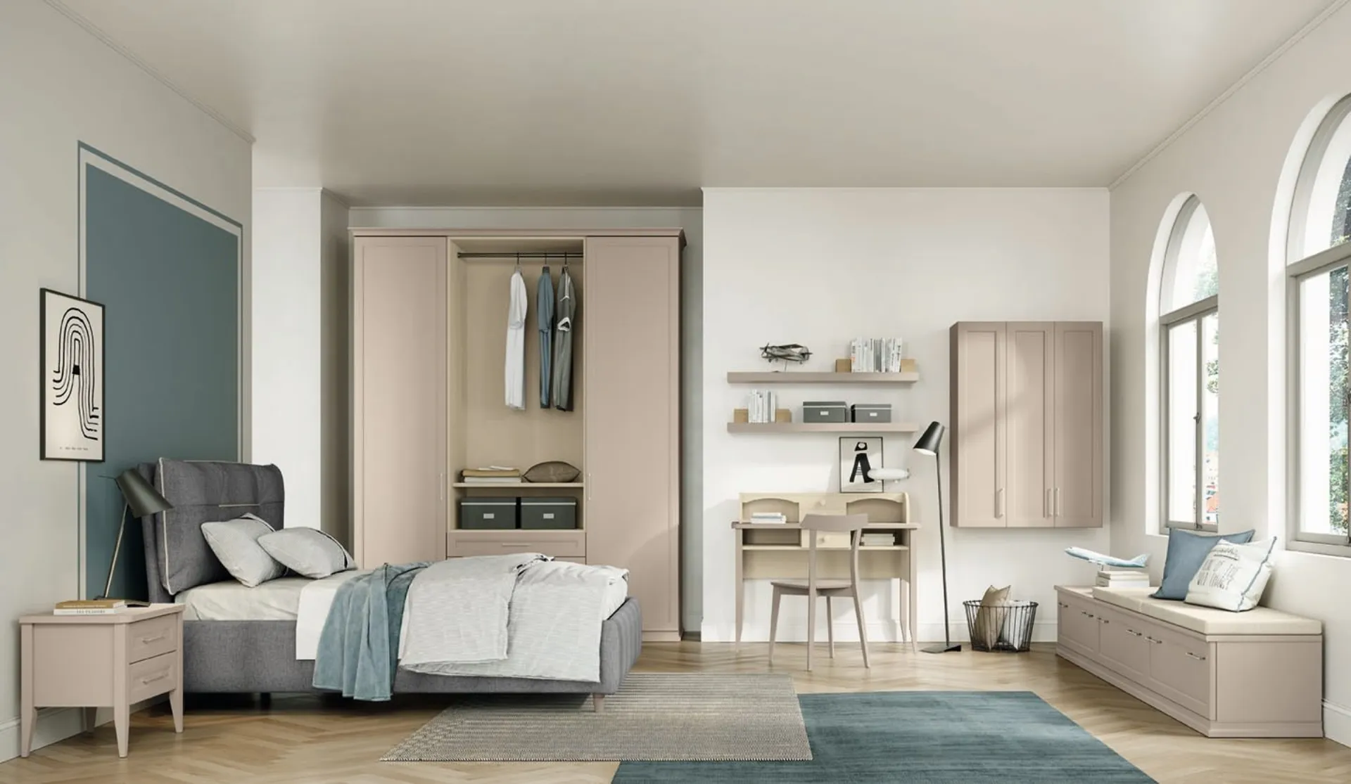 Camerette componibili per ragazzi: scopri il modello in melaminico Arcadia AC012 di Colombini Casa per stanzette classiche.