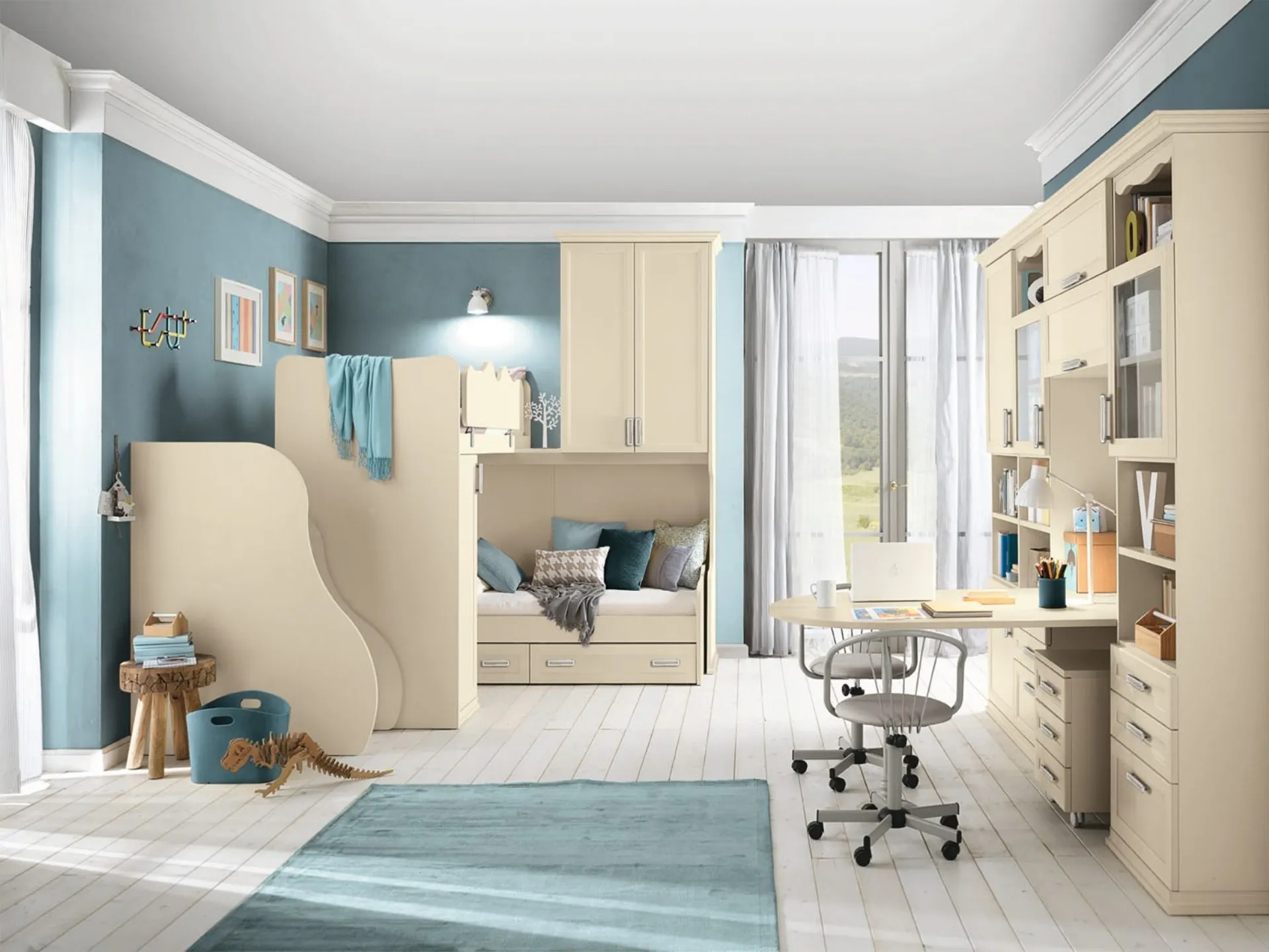Se la stanza ha dimensioni non generose, sono differenti le soluzioni che Colombini Casa presenta, sempre capaci di congiungere ergonomia e sicurezza. Materiali pregiati e vernici atossiche contraddistinguono le proposte del marchio, tra cui troverai anche quelle classiche a soppalco ideali per te. Gli elementi accessori disponibili per le Camerette a soppalco di Colombini Casa sono sempre personalizzabili, per scongiurare qualsiasi problematicità di spazio e praticità. Le Camerette a soppalco per bambini del rinomato marchio sono disponibili in svariate versioni, che rispondono sempre alle richieste dei bimbi. Scopri nel nostro showroom la Cameretta a soppalco Arcadia AC025 di Colombini Casa in melaminico: è ideale per creare ottimamente un ambiente accogliente, bello e ben organizzato.
