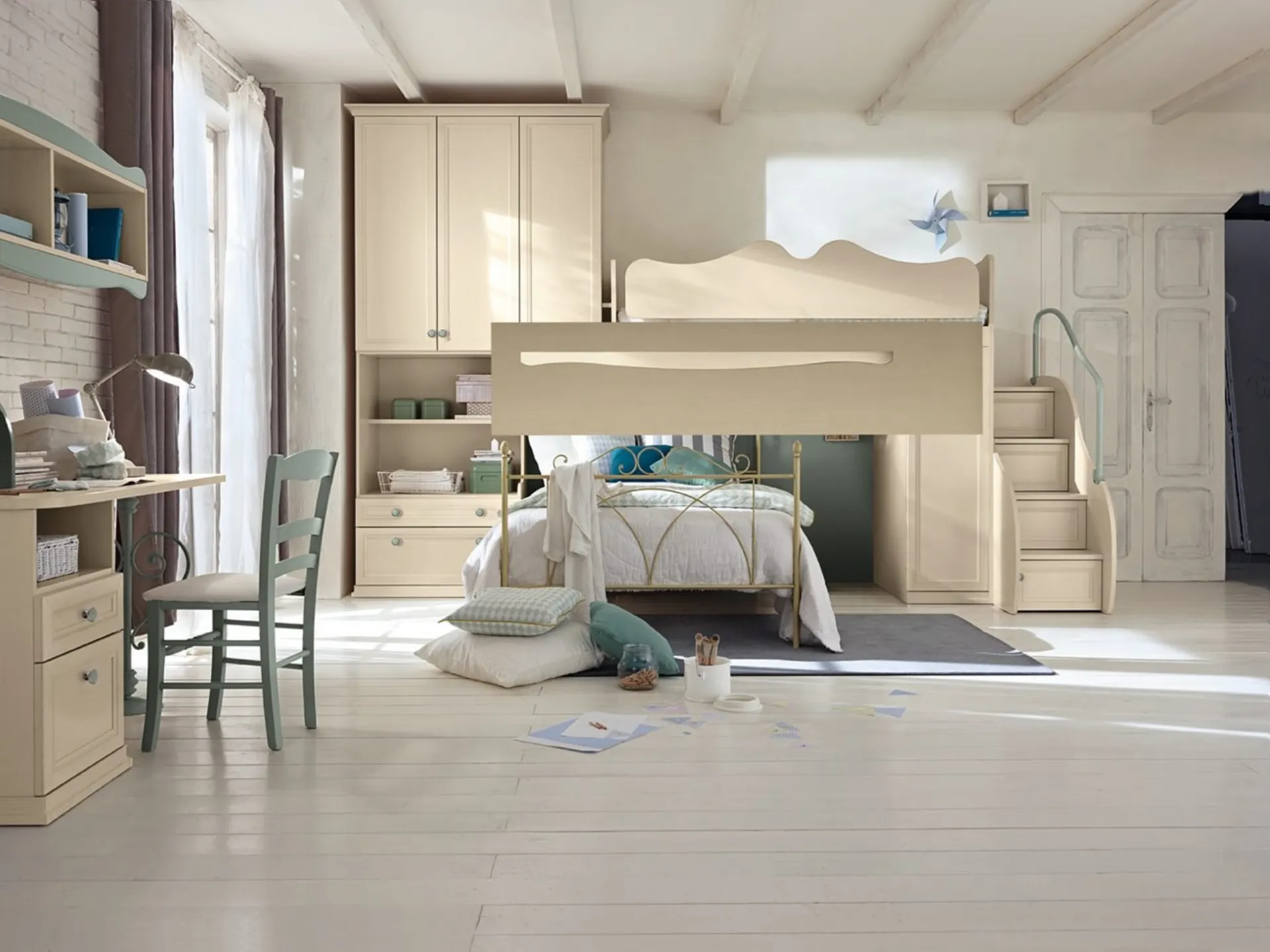 Camerette a soppalco per ragazzi: scopri il modello in melaminico Arcadia AC026 di Colombini Casa per stanzette classiche.