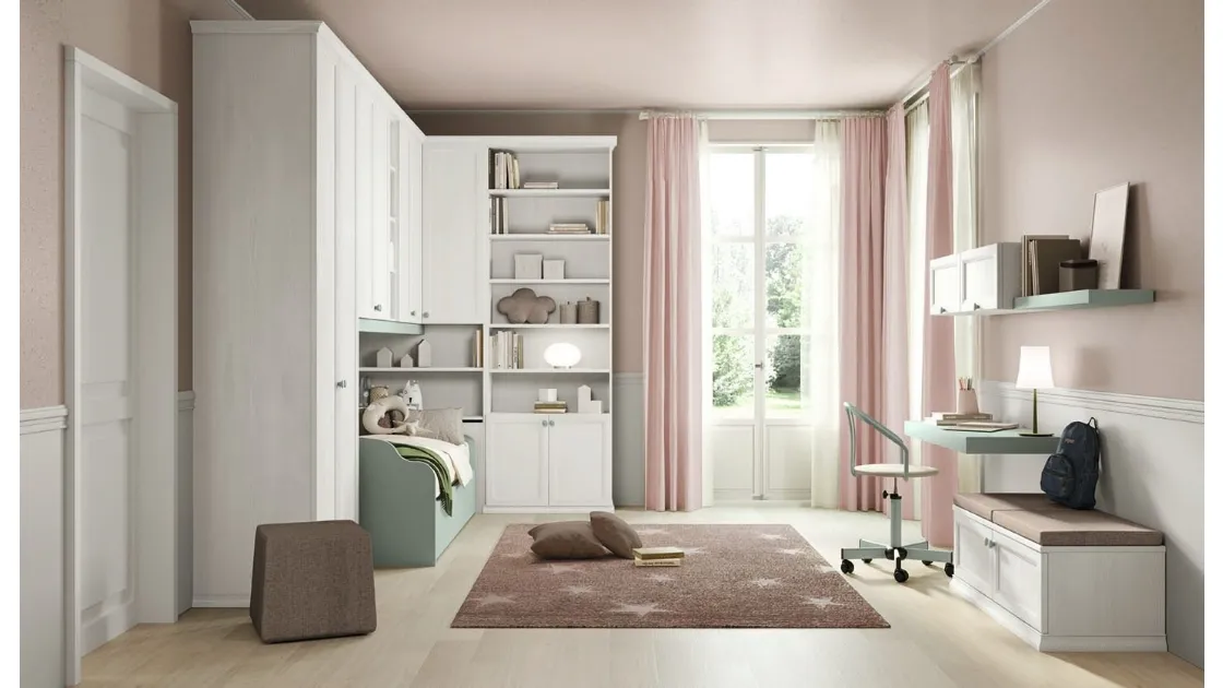 Arreda stanzette classiche con le Camerette a ponte Colombini Casa! Il modello Arcadia AC029 in melaminico è per ragazzi.