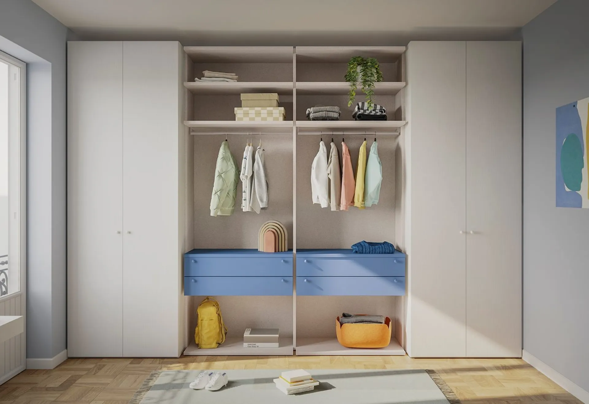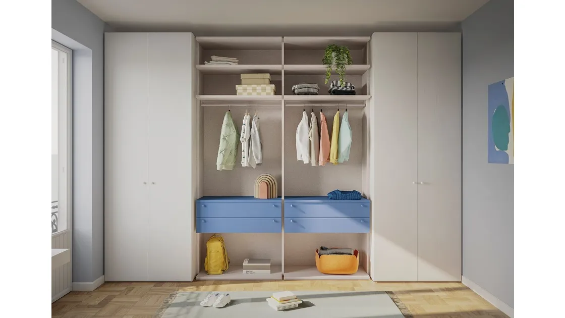 Arreda stanzette moderne con le Camerette componibili Colombini Casa! Il modello Golf K04 in melaminico è per bambini.
