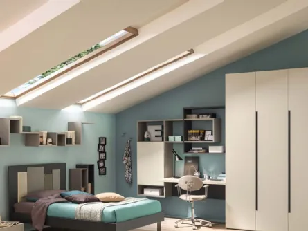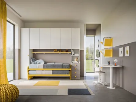 Arreda stanzette moderne con le Camerette componibili Colombini Casa! Il modello Golf K17 in melaminico è per ragazzi.