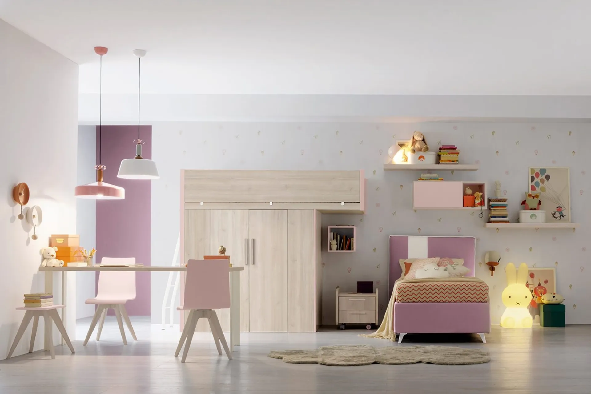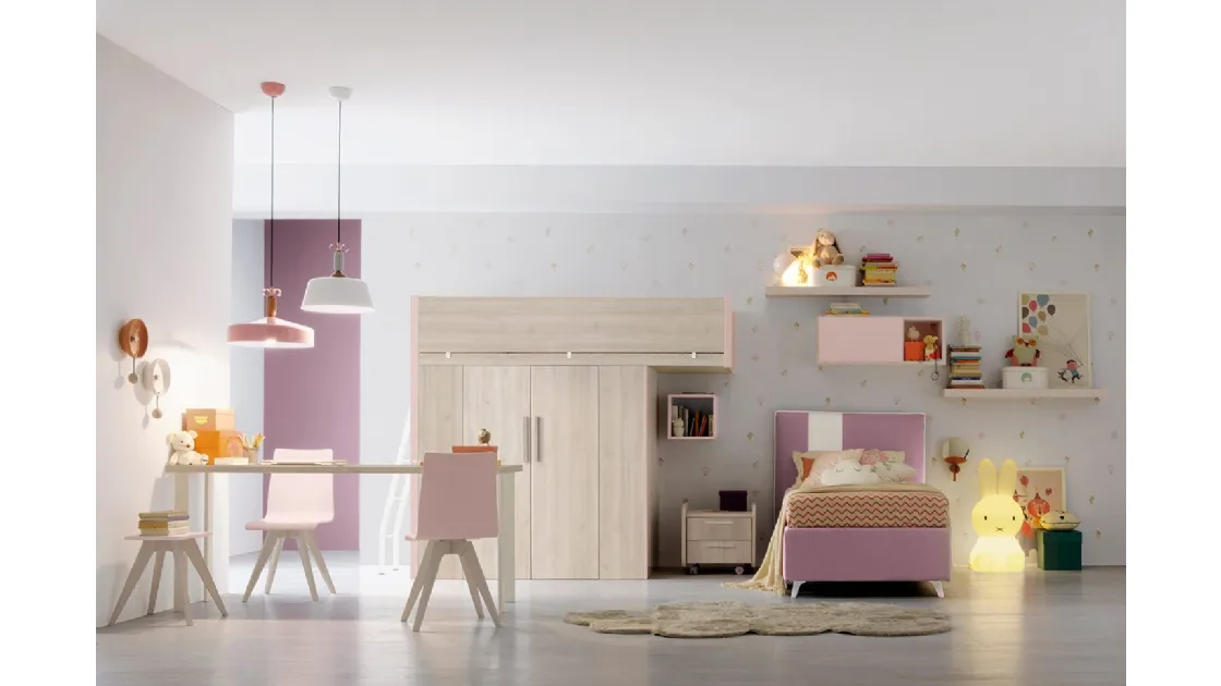 Camerette a soppalco per bambine: scopri il modello in melaminico Golf K38 di Colombini Casa per stanzette moderne.