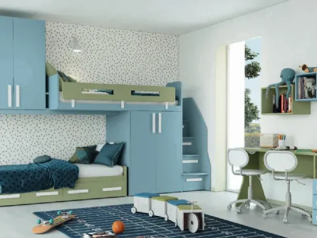 Arreda stanzette moderne con le Camerette a ponte Colombini Casa! Il modello Golf K47A in melaminico è per ragazzi.