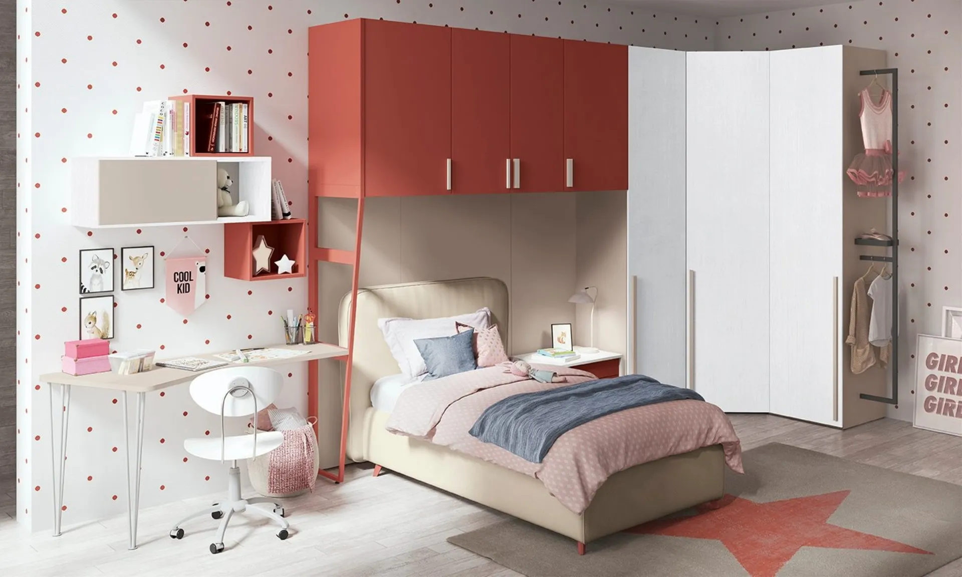 Le Camerette dei nostri figli sono lo spazio dove cresceranno giocando e sognando, perciò è imprescindibile che lo spazio sia pratico. Nel nostro showroom ti seguiamo dalla scelta dei mobili per la camera alla progettazione del luogo nel quale i tuoi bambini cresceranno, giocando e sognando. I nostri bambini passano molto tempo della giornata nelle loro camere da letto: rendile adatte per dedicarsi alla scuola, divertirsi e riposare ogni giorno. Con la Cameretta Golf K47B di Colombini Casa in melaminico ti assicurerai un perfetto connubio di funzionalità ed ergonomia, ideale per la stanza dei tuoi figli. Presentiamo in negozio molteplici Camerette a ponte moderne per bambine del brand, ideali per accompagnarli durante il loro sviluppo.