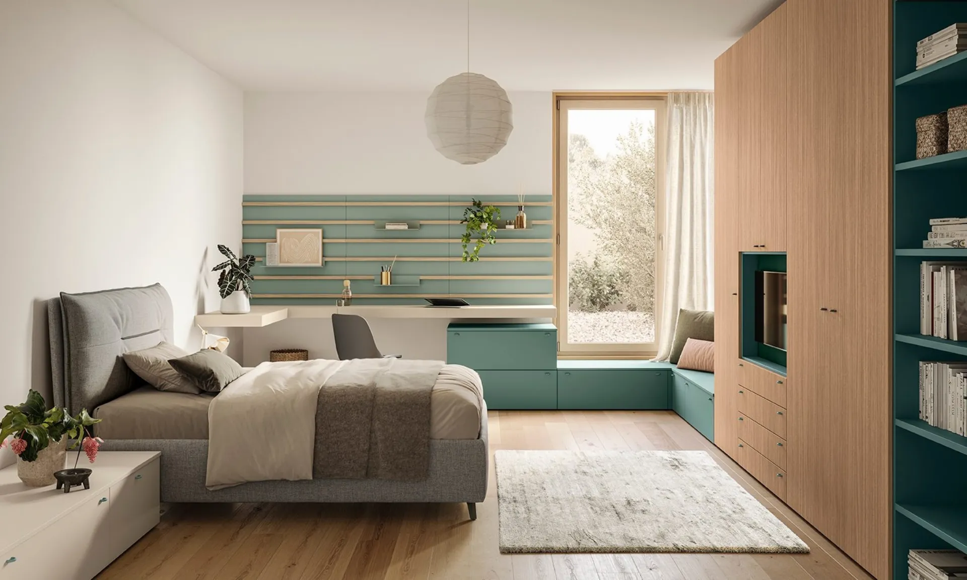 Camerette su misura per ragazzi: scopri il modello in melaminico Golf Y13 di Colombini Casa per stanzette moderne.