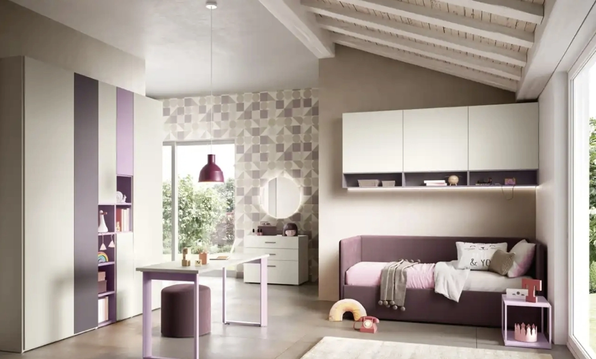 Camerette componibili per bambine: scopri il modello in melaminico K106 di Moretti Compact Camerette per stanzette moderne.