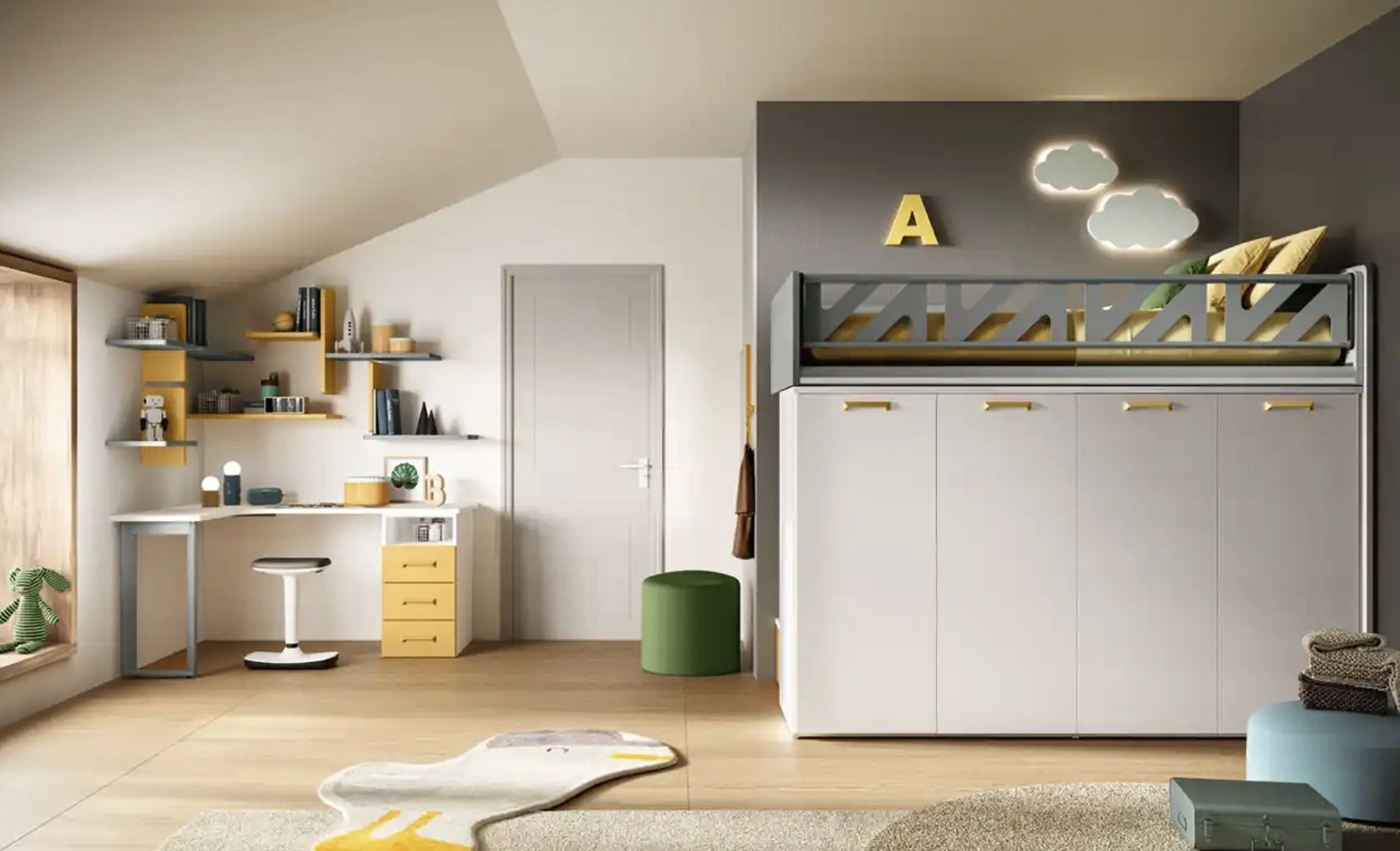 Materiali pregiati e vernici ecologiche connotano le proposte del marchio, tra cui troverai anche quelle moderne a soppalco ideali per te. Gli elementi accessori disponibili per le Camerette a soppalco di Moretti Compact Camerette sono sempre personalizzabili, per scongiurare qualsiasi problematicità di spazio e praticità. Se la stanza ha dimensioni ridotte, sono diverse le soluzioni che Moretti Compact Camerette presenta, sempre capaci di abbinare funzionalità ed ergonomia. Scopri in negozio la Cameretta K109 di Moretti Compact Camerette in melaminico: si adatta a creare ottimamente un ambiente ideale per i bambini, bello e ben organizzato.