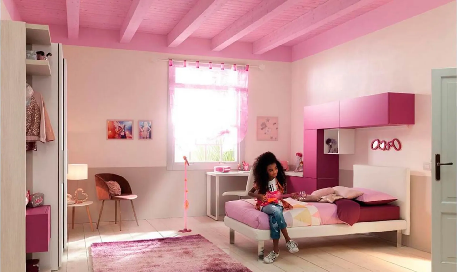 Camerette componibili per bambine: scopri il modello in laccato opaco KC303 di Moretti Compact per stanzette moderne.