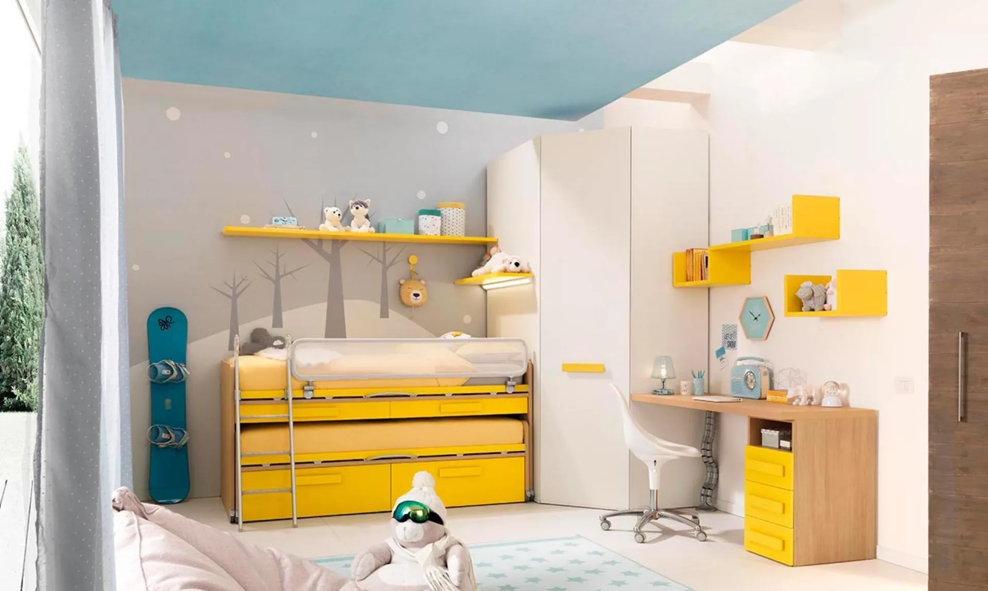 Con questa cameretta KC304 Moretti Compact, tra le soluzioni salvaspazio, potrai ammobiliare stanze moderne per bambini.