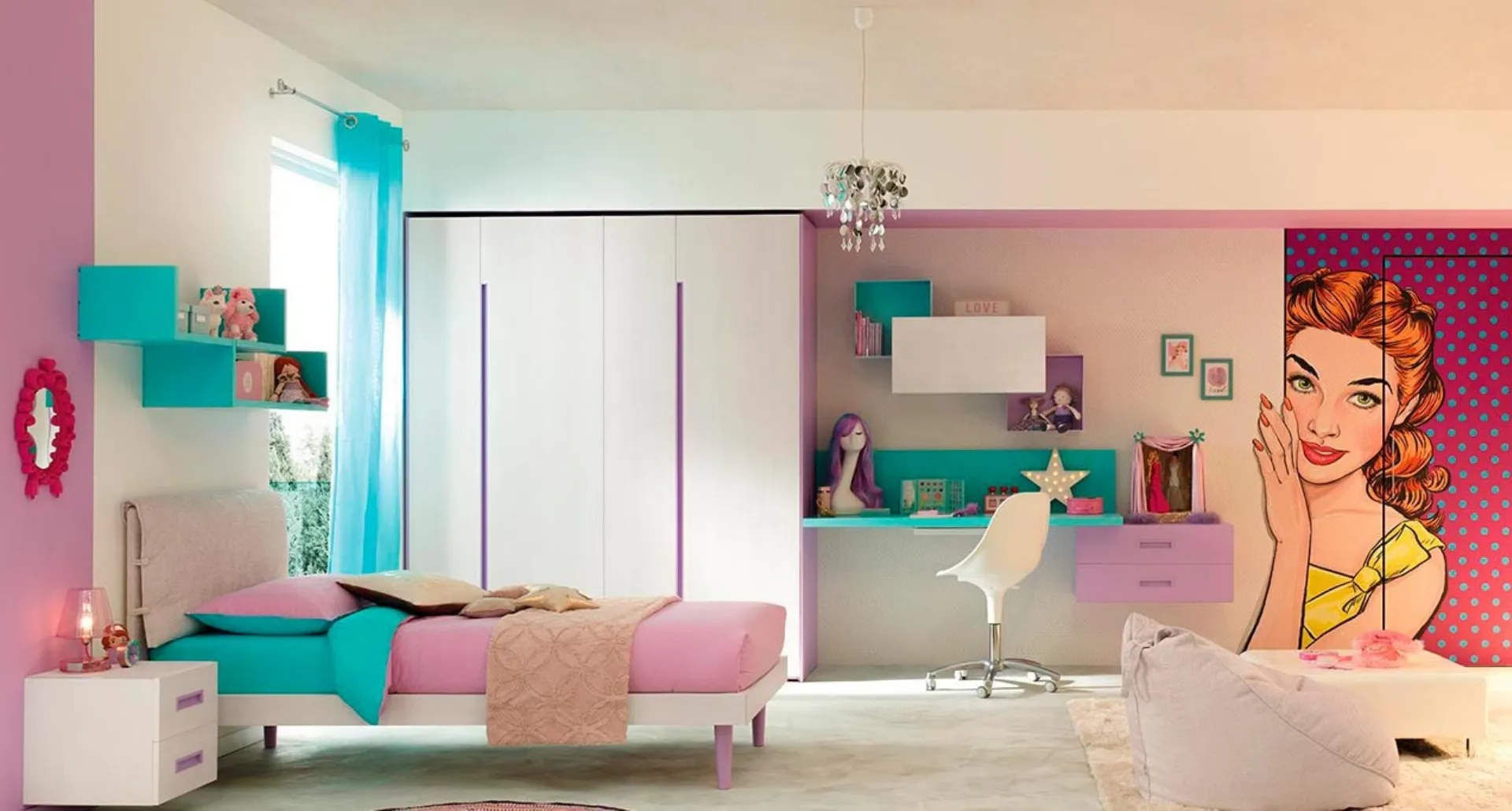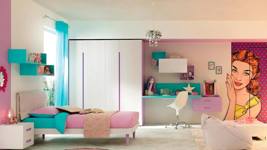 Camerette componibili per bambine: scopri il modello in laccato opaco KC305 di Moretti Compact per stanzette moderne.