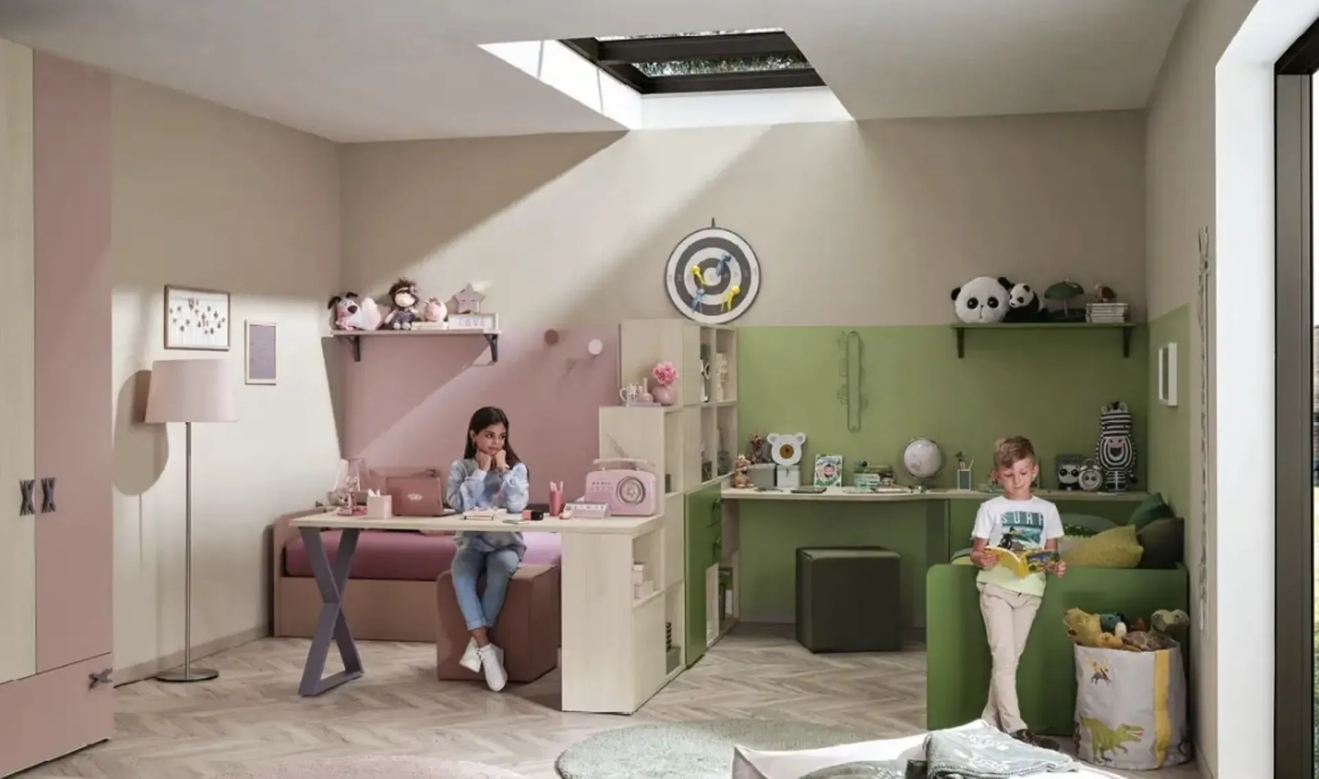 Arreda stanzette moderne con le Camerette componibili Moretti Compact! Il modello KC326 in laccato opaco è per bambine.