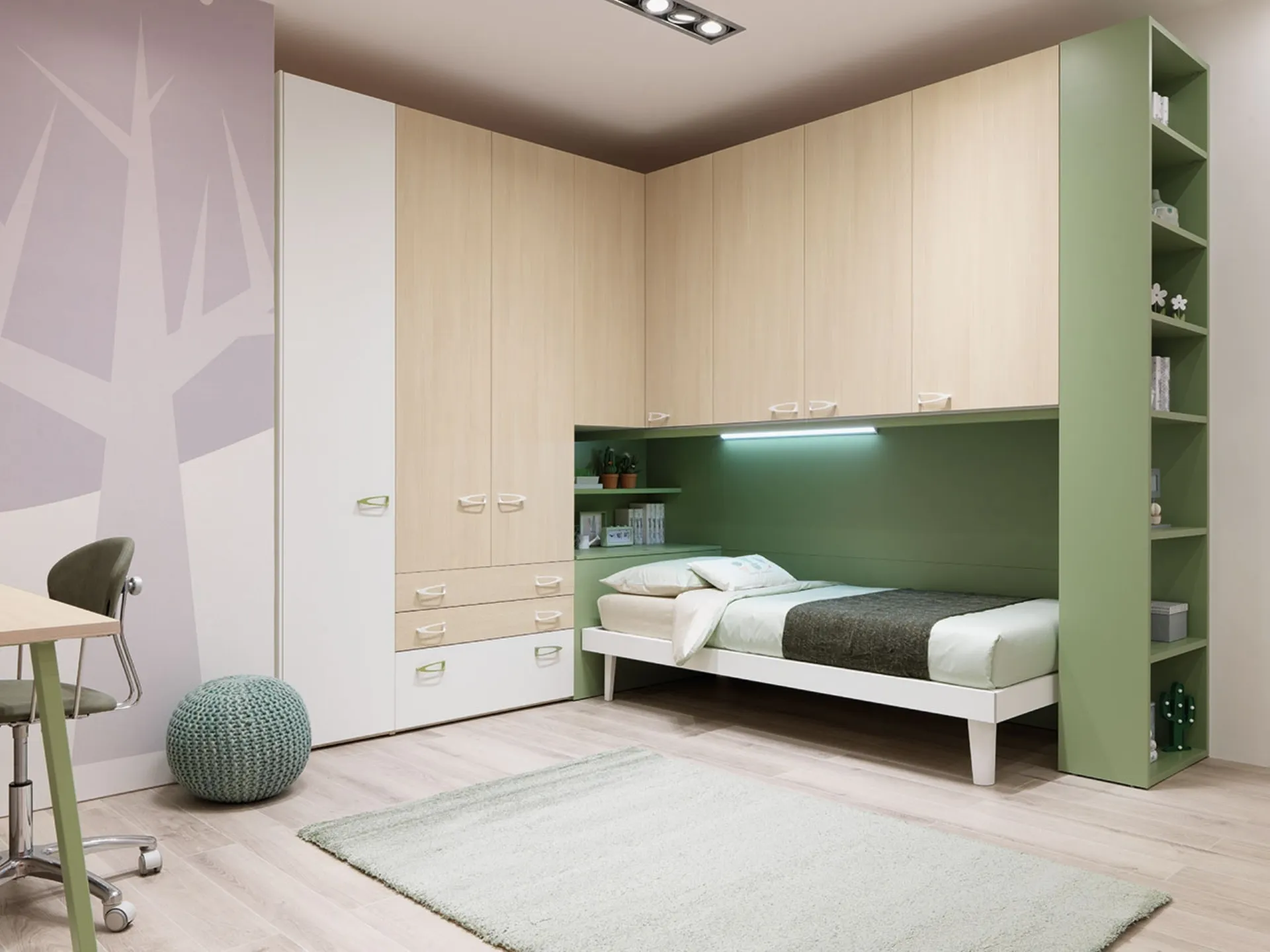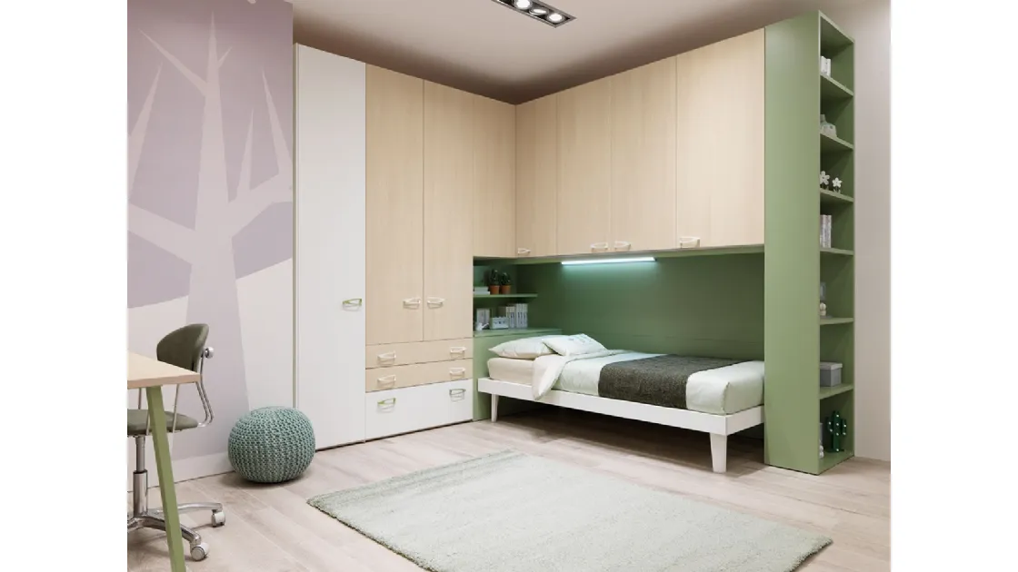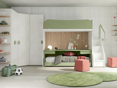 Arreda stanzette moderne con le Camerette a ponte Moretti Compact! Il modello MC015 in melaminico è per ragazzi.