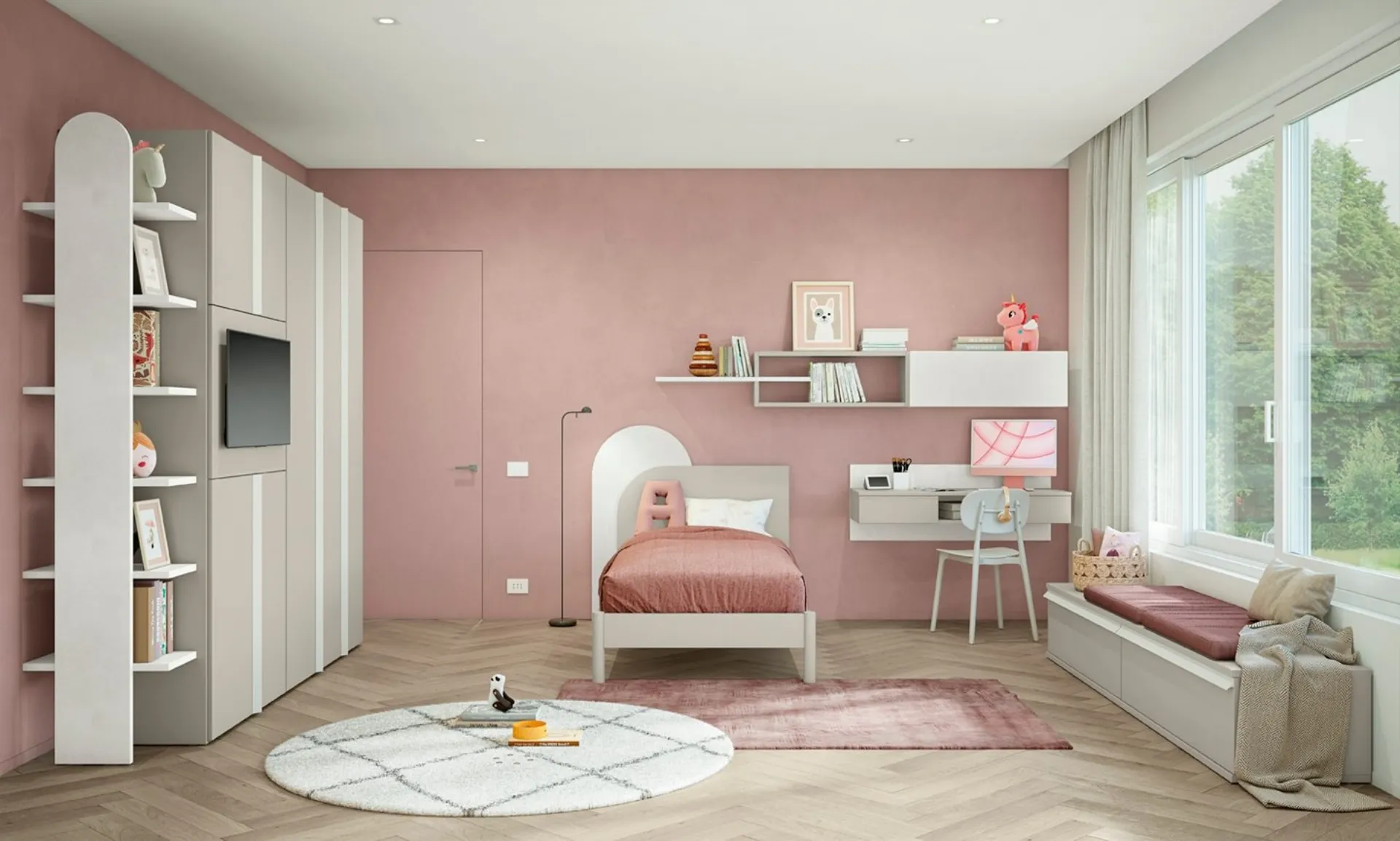 Arreda stanzette moderne con le Camerette componibili Colombini Casa! Il modello Volo Kid C002 in melaminico è per bambine.