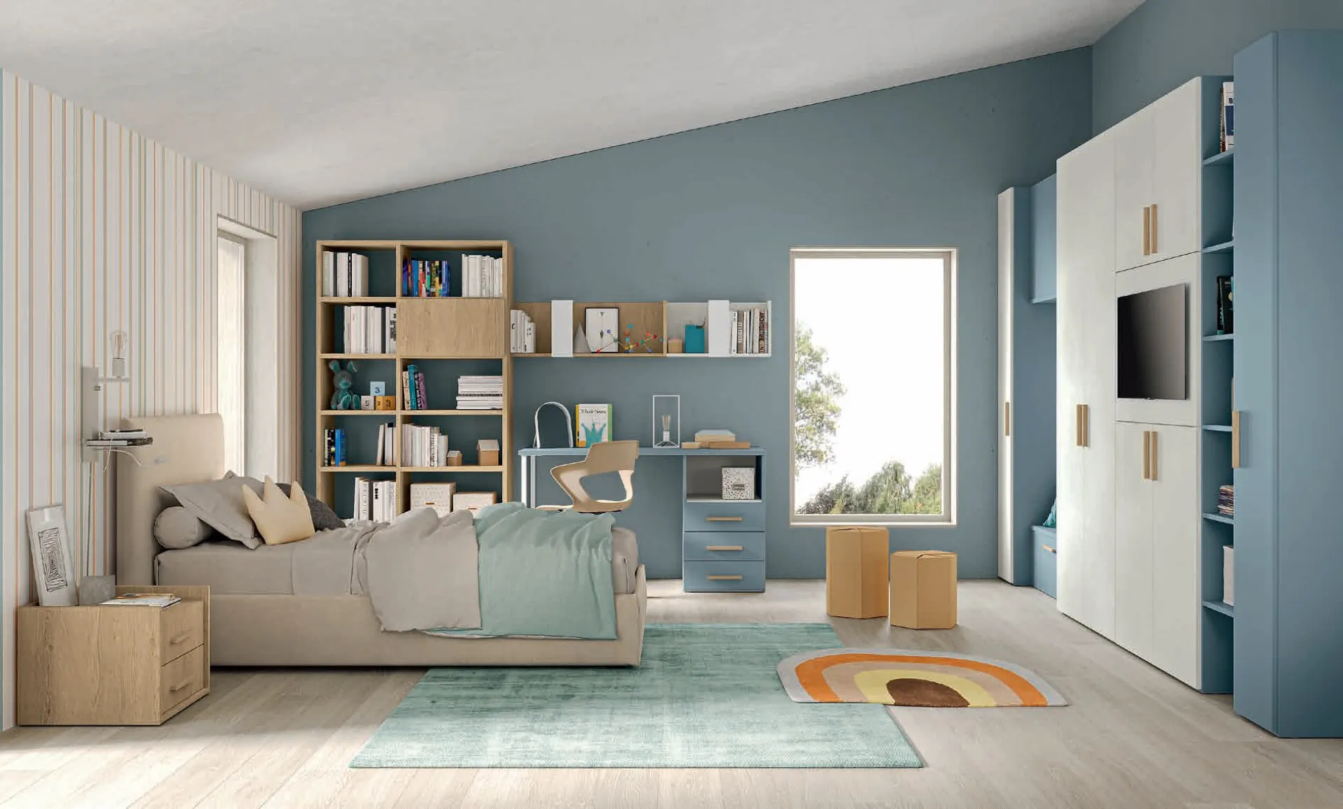 Con questa cameretta Volo Kid C018 Colombini Casa, tra le soluzioni componibili, potrai arredare stanze moderne per ragazzi.