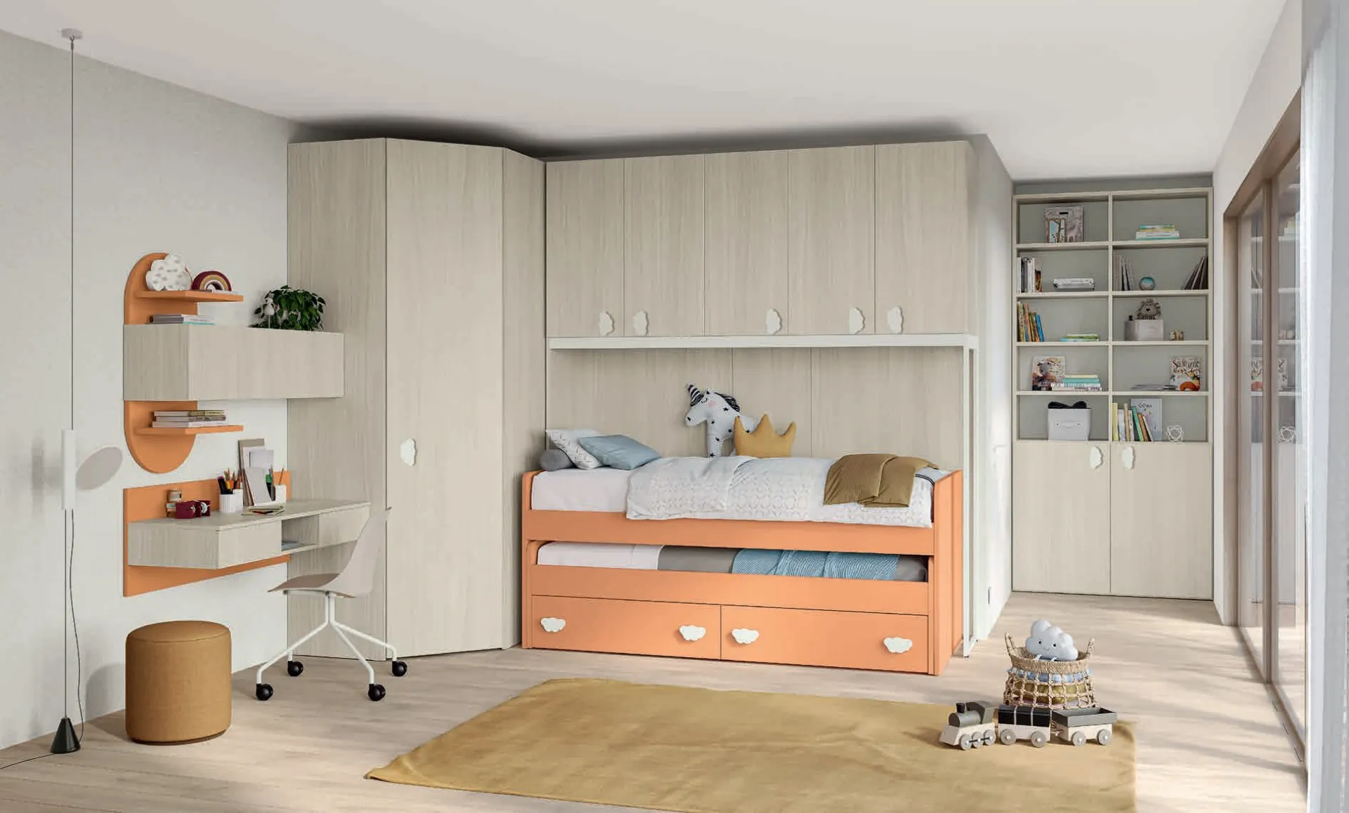 In negozio ti guidiamo dalla scelta dei mobili per la camera alla progettazione del luogo in cui i tuoi bimbi cresceranno, divertendosi e sognando. Presentiamo nel nostro punto vendita svariate Camerette a ponte moderne per ragazzi del brand, ideali per accompagnarli durante la loro crescita. Con la Cameretta Volo Kid C026 di Colombini Casa in melaminico ti garantirai un perfetto mix di funzionalità ed ergonomia, ideale per la stanza dei tuoi bambini. Le Camerette dei nostri bambini sono lo spazio dove diventeranno grandi divertendosi e sognando, perciò è essenziale che lo spazio sia pratico. I nostri bambini passano gran parte del giorno nelle loro camere da letto: rendile adatte per dedicarsi alla scuola, divertirsi e dormire tutti i giorni.