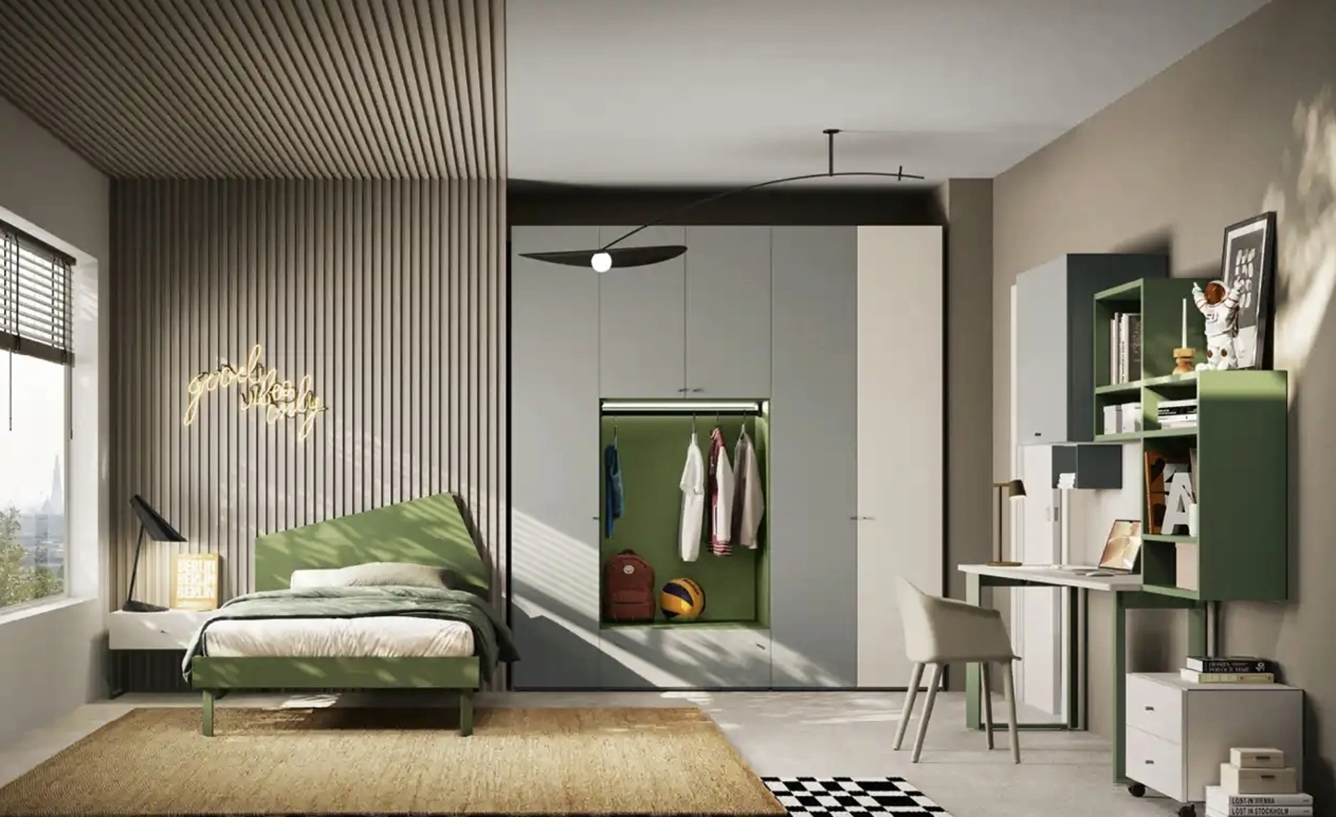 Camerette componibili per ragazzi: scopri il modello in laccato opaco Y106 di Moretti Compact Camerette per stanzette moderne.
