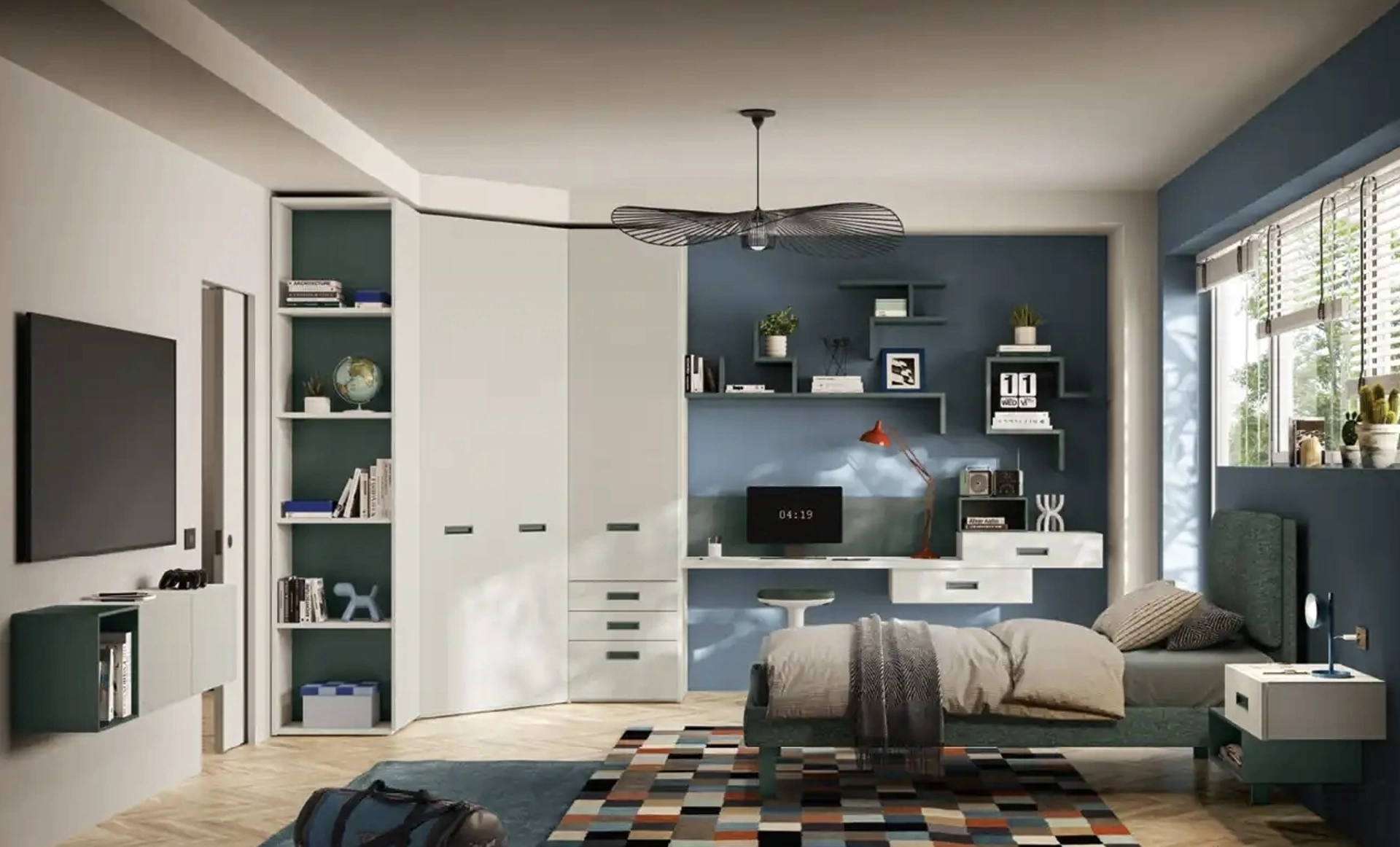 Con questa cameretta Y120 Moretti Compact Camerette, tra le soluzioni componibili, potrai arredare stanze moderne per ragazzi.