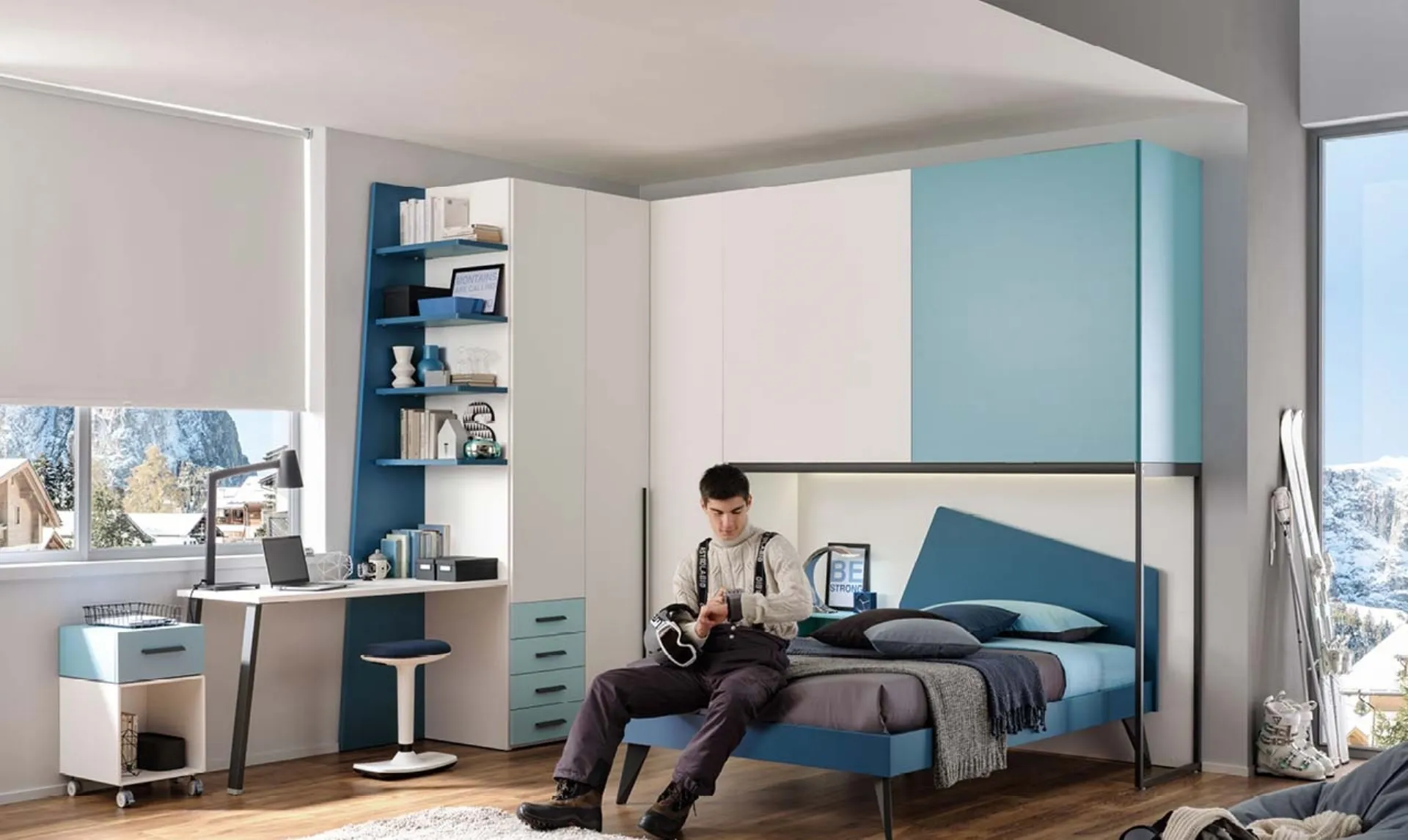 Con questa cameretta YC313 Moretti Compact, tra le soluzioni a ponte, potrai progettare stanze moderne per ragazzi.