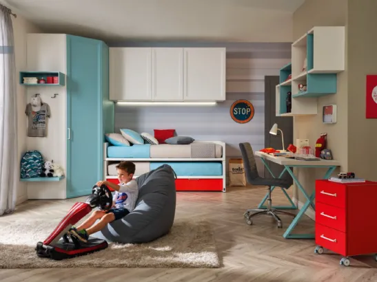 Camerette componibili per ragazzi: scopri il modello in laccato opaco YC305 di Moretti Compact per stanzette design.
