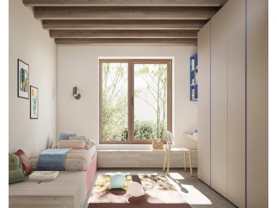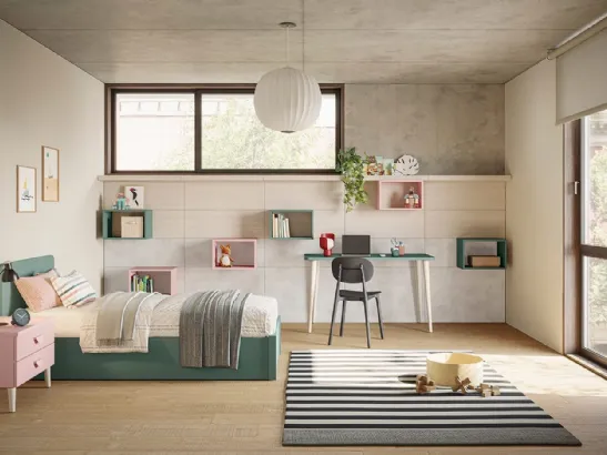 Con questa cameretta Golf K05 Colombini Casa, tra le soluzioni componibili, potrai arredare stanze moderne per bambine.