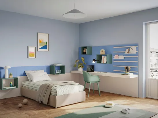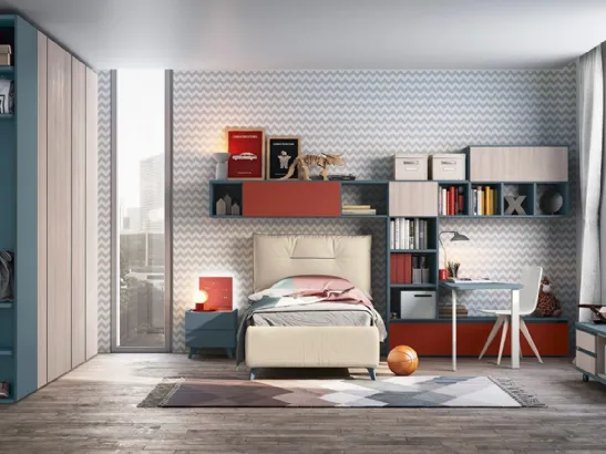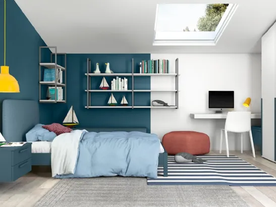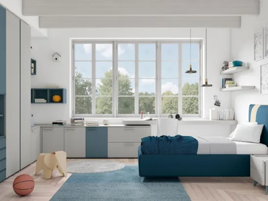 Camerette componibili per ragazzi: scopri il modello in melaminico Golf K07 di Colombini Casa per stanzette moderne.