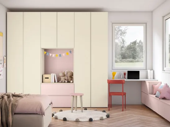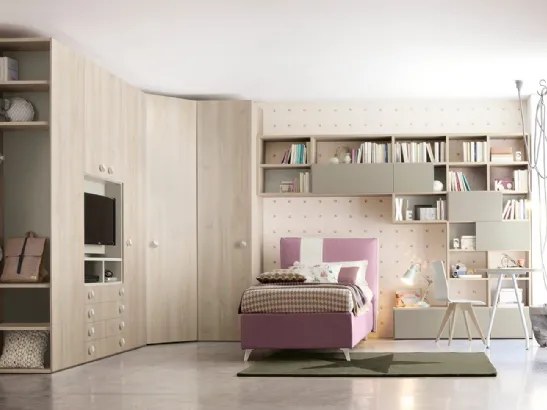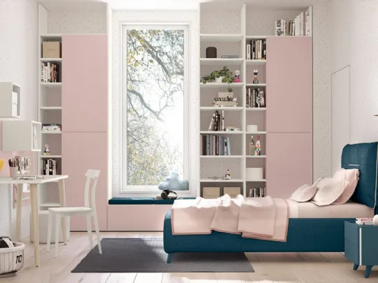 Camerette componibili per bambine: scopri il modello in melaminico Golf K02 di Colombini Casa per stanzette moderne.